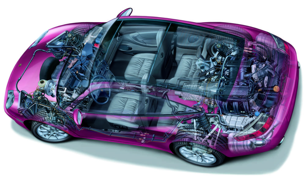 Artist's impression of the 911 Carrera 4S with power unit and running gear