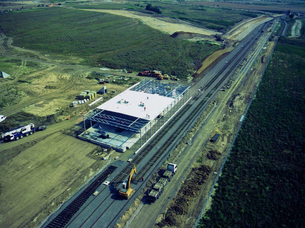 For the delivery of the vehicle parts a rail loading station comes into being (as of February 2001)
