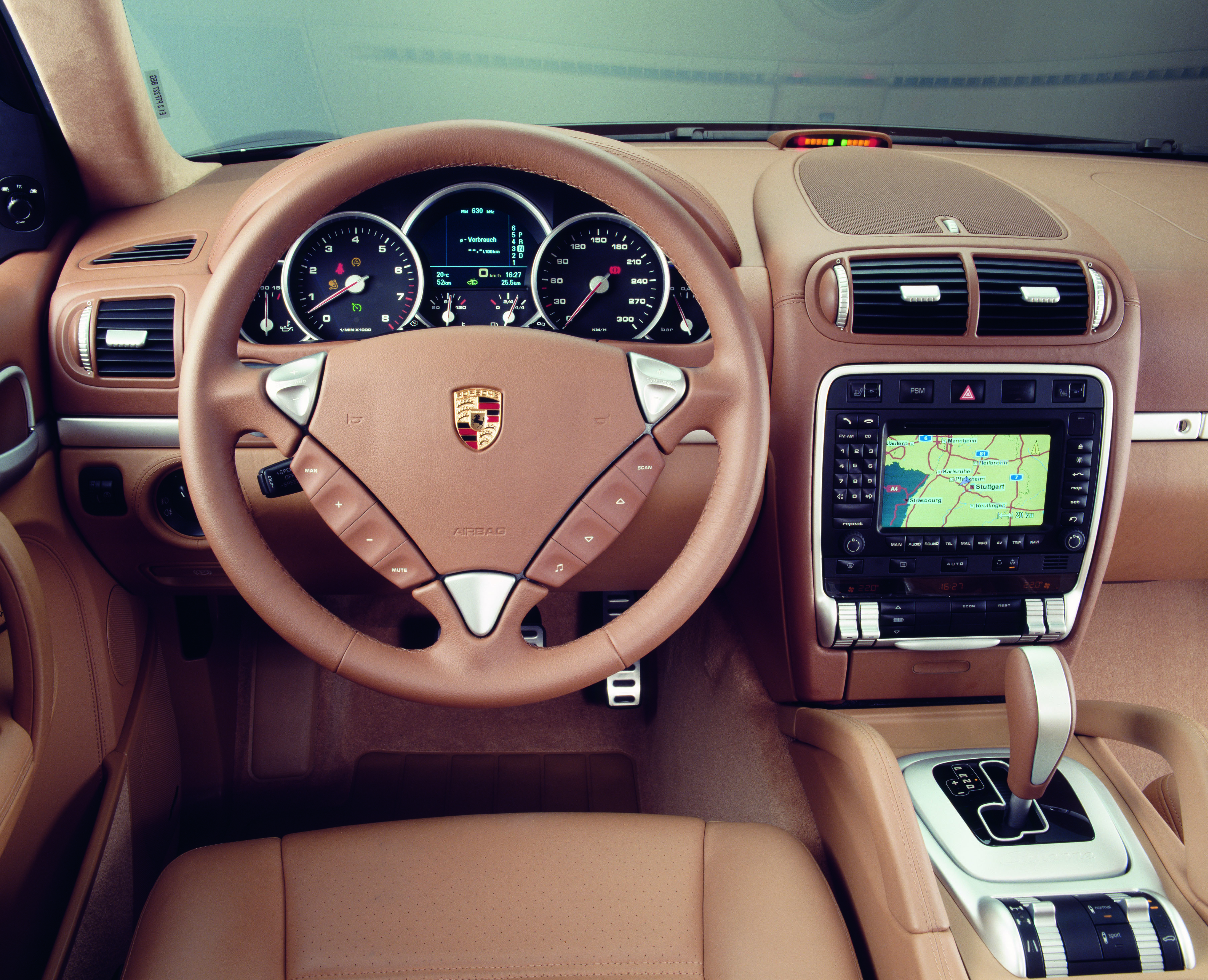 Interior equipment of the Cayenne S with Tiptronic S, Porsche Communication Management (PCM) and multifunction steering wheel