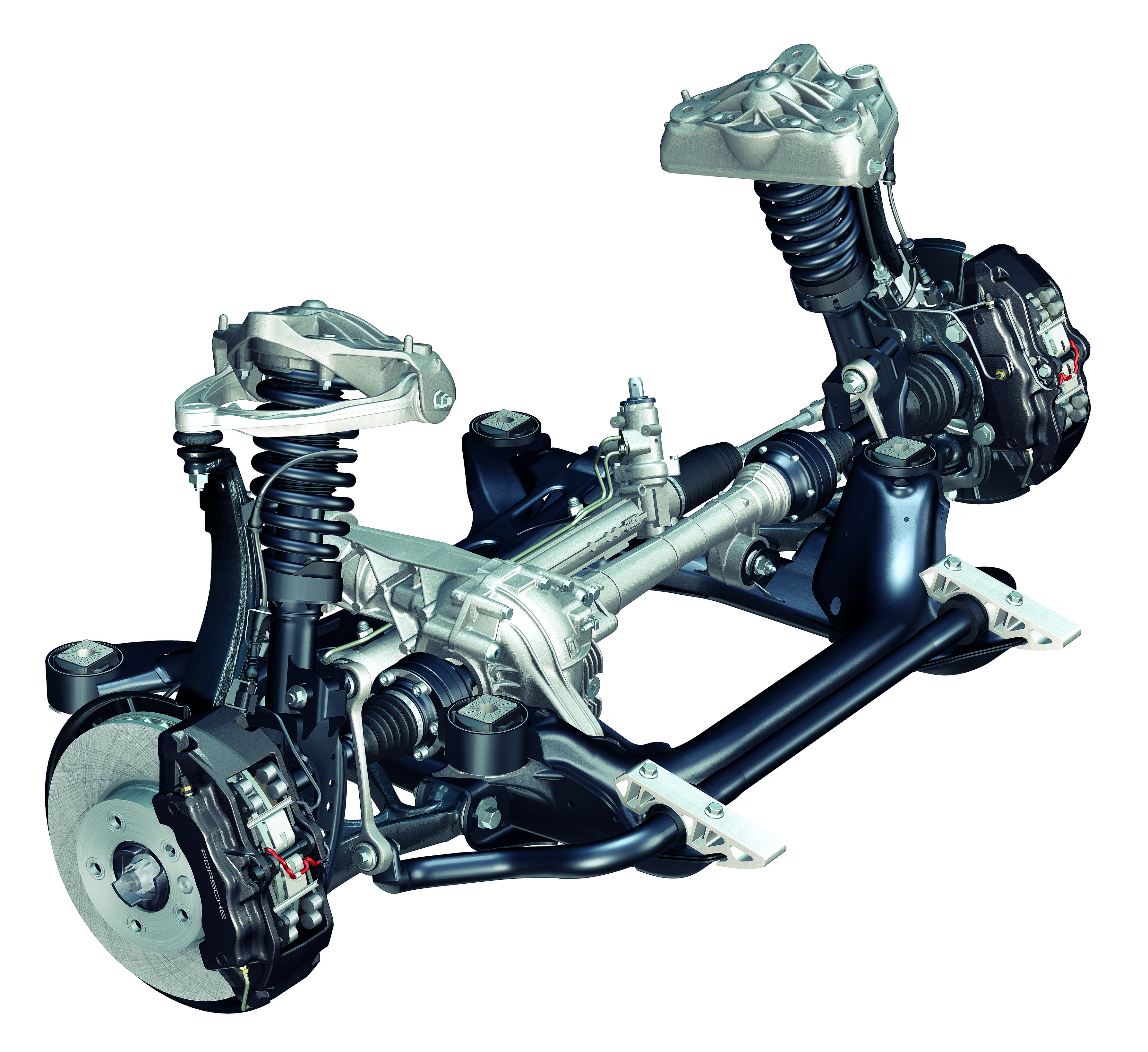 Front axle: large-format double-wishbone suspension with subframe assembly
