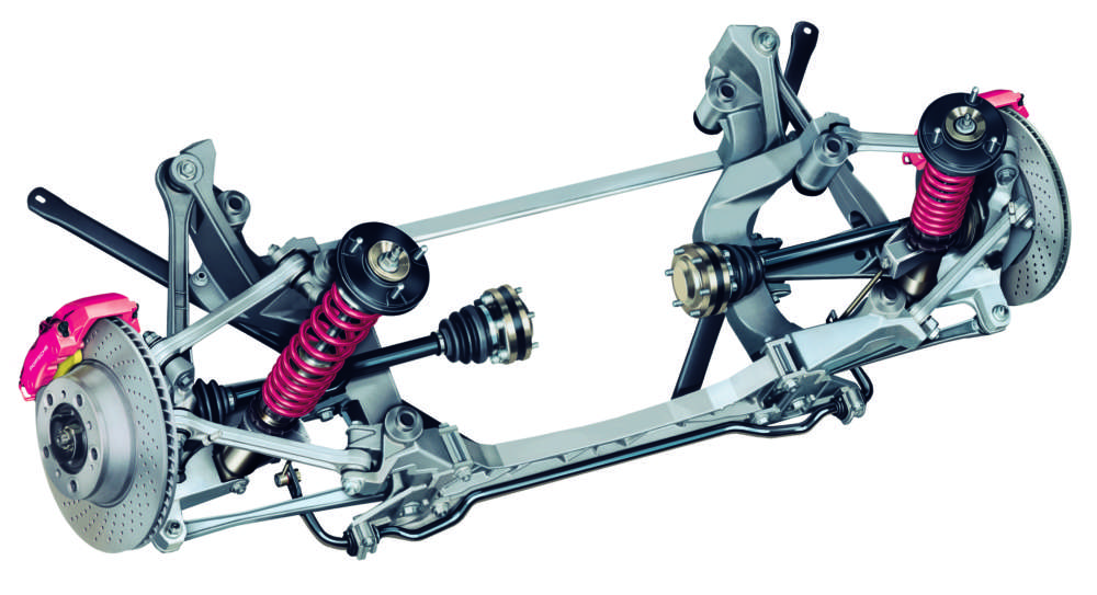 Rear axle with brake system: The damper strut with single-tube gas-filled shock absorber has been made tighter in the tension and pressure stage