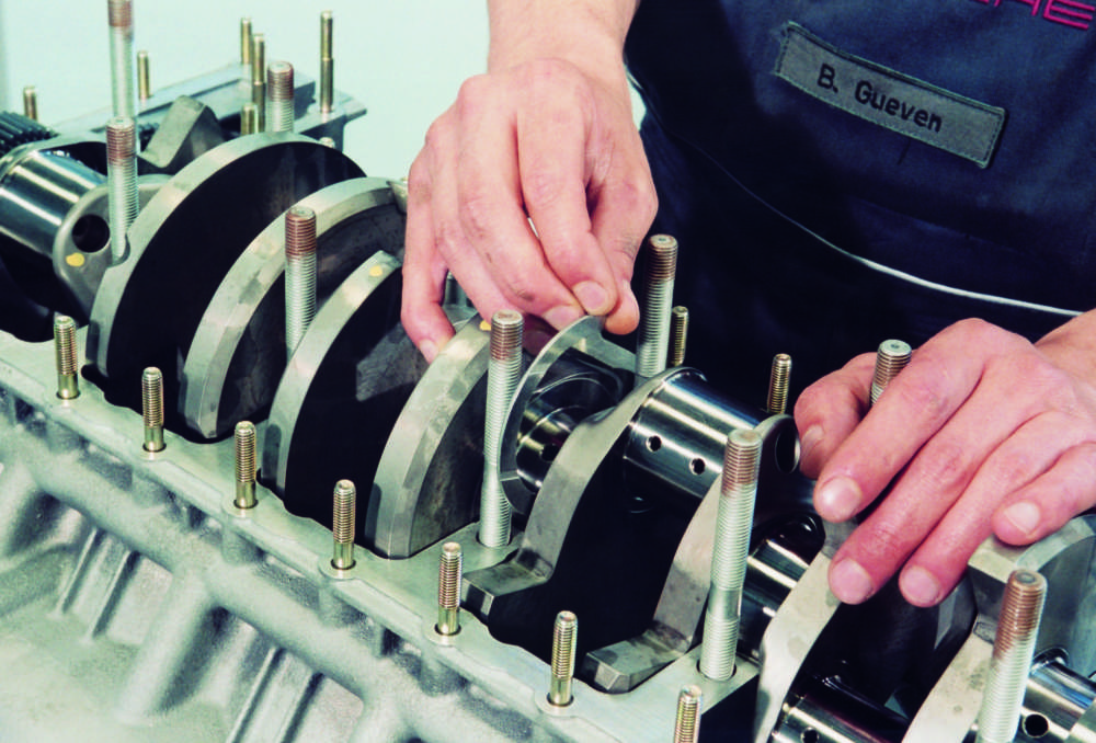 Before the pistons and the connecting rods are installed in the Carrera GTâÂÂs engine, the crankshaft is precisely fitted.