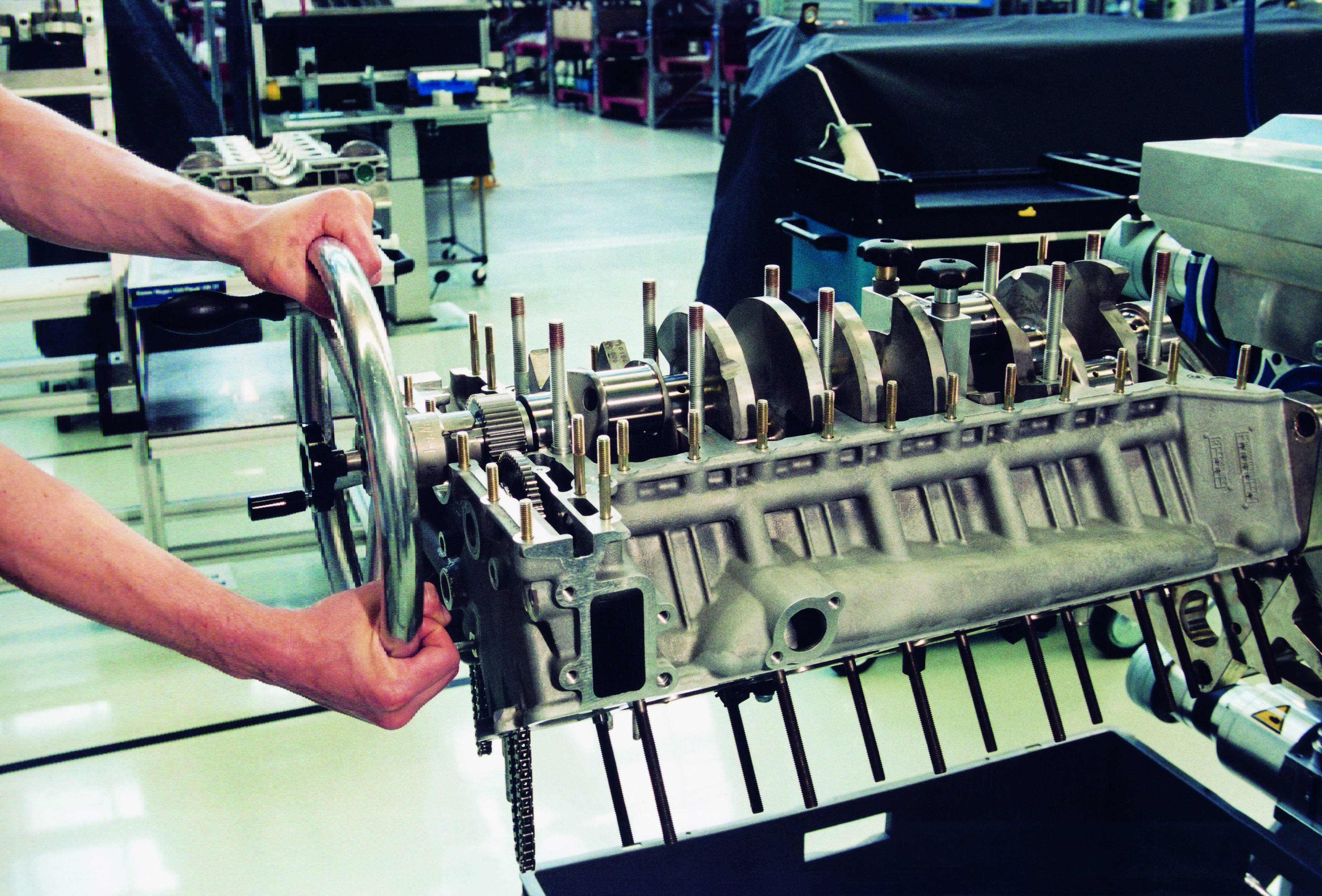A programmed torque wrench with radio data monitoring helps to get the connecting rodâÂÂs screw connection just right in the Carrera GT engine.