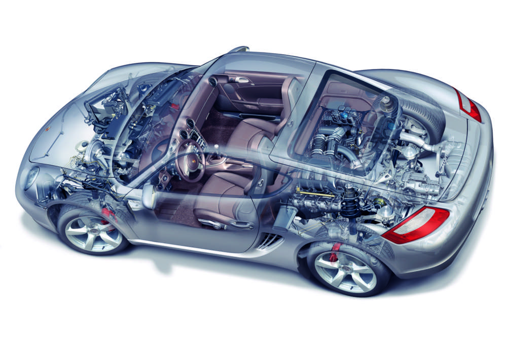 Phantom diagram of chassis and drive assemblies of the Cayman S