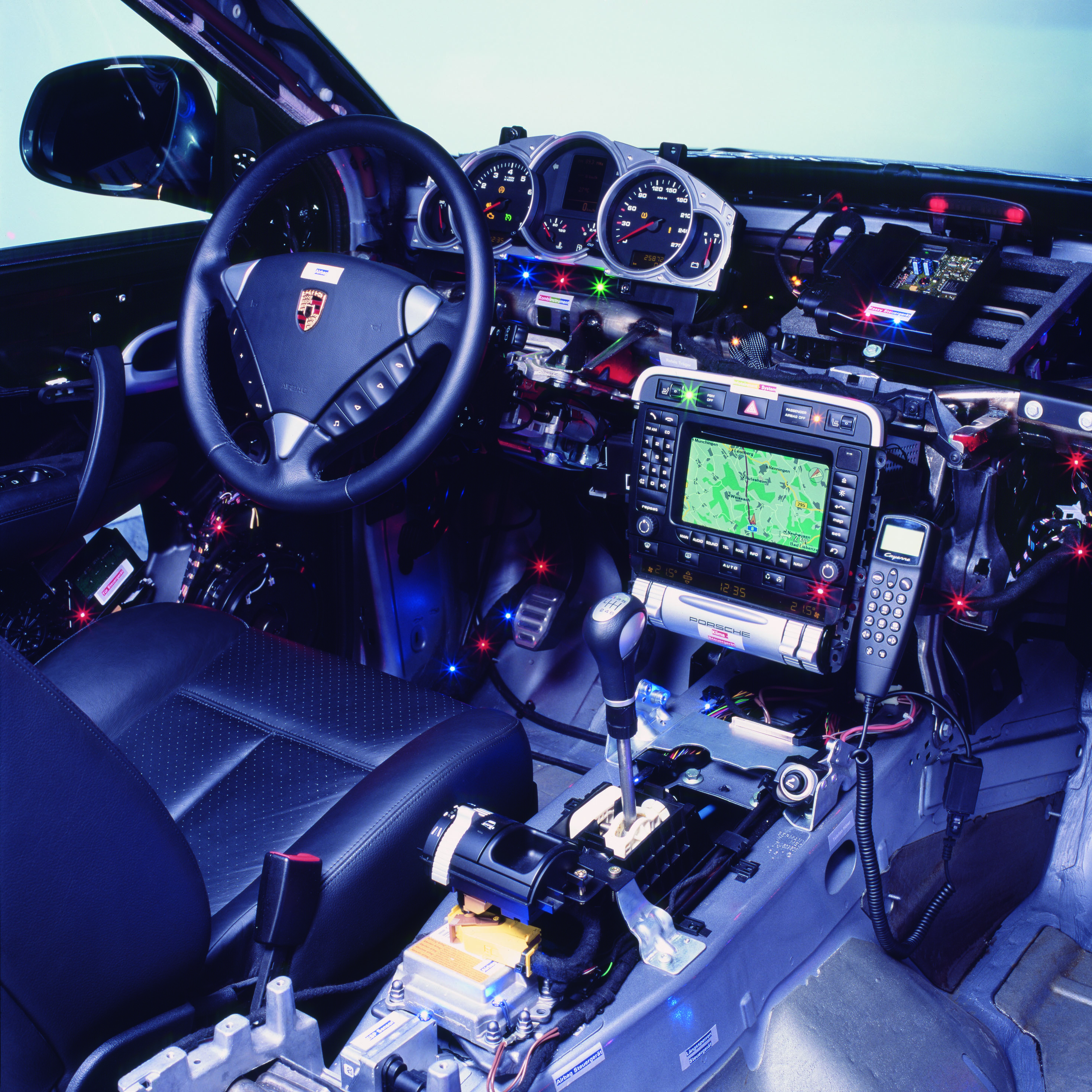 With the exception of the driverâs seat, there is no interior trim, no further seats and dashboard, thus providing direct access to all electronic components fitted within the car.