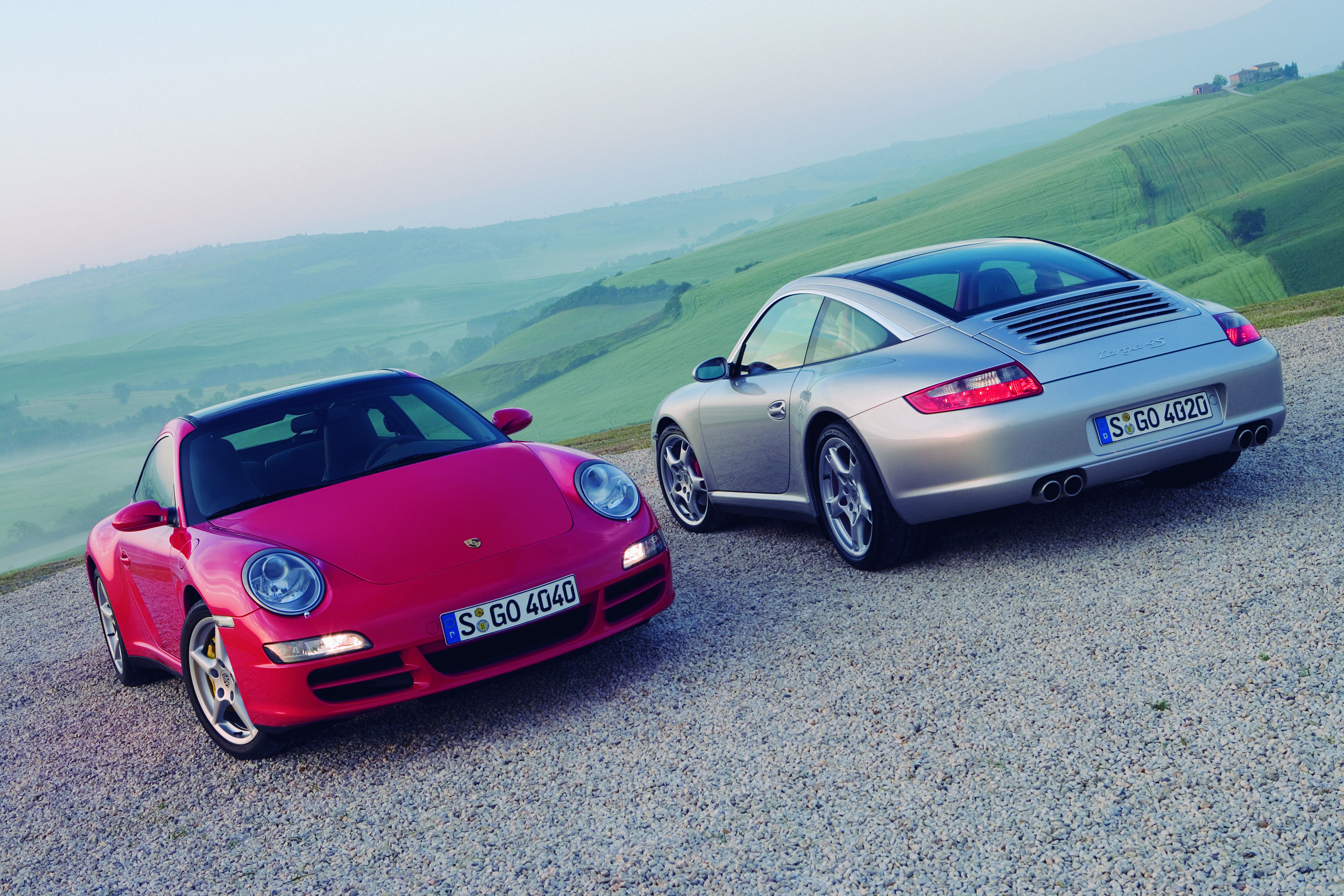 The winning vehicle for 1973 was the Porsche 911 Carrera RSR (right) driven by Herbert Müller and Gijs van Lennep. On the left is the Porsche 914-6 belonging to a private racing team.