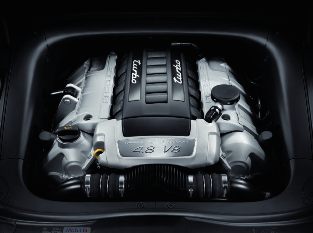 The 4.8-l-V8-engine of the Cayenne Turbo delivers 368 KW (500 HP)