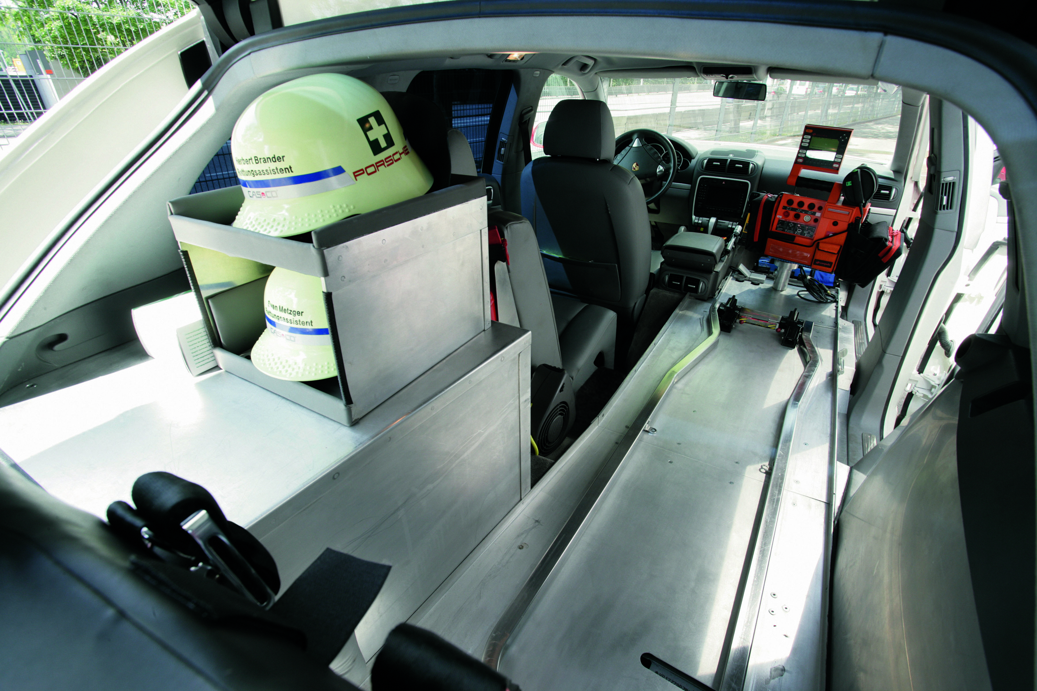 Cayenne emergency vehicle with aluminum frame construction to accommodate the stretcher in the vehicle interior