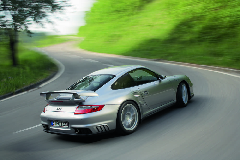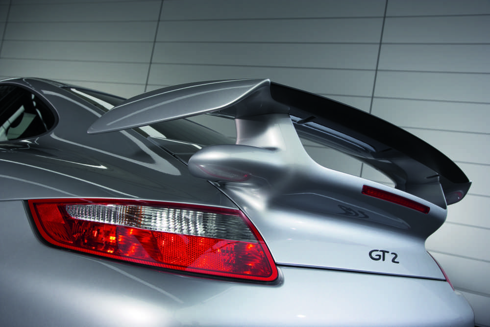 Back-pressure air intakes in the 911 GT2 wing mounts