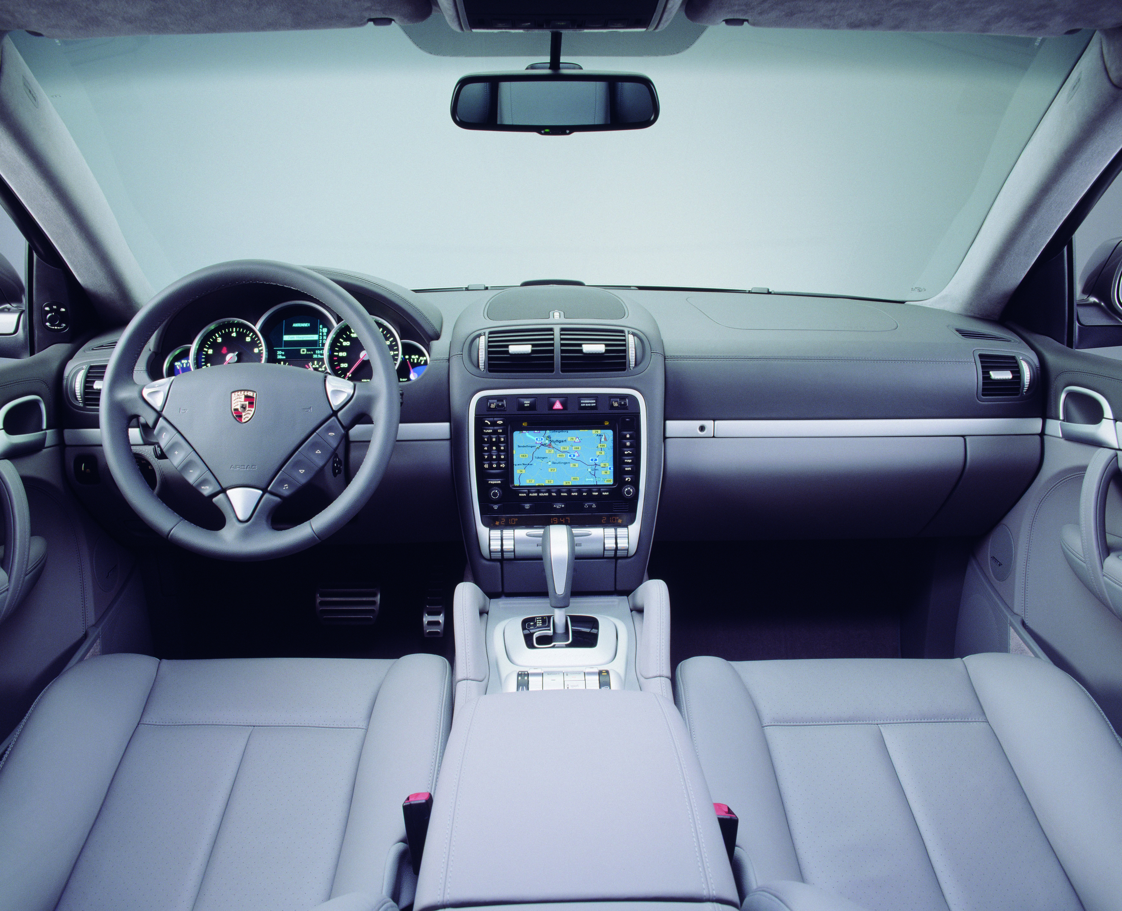 Interior equipment of the Cayenne Turbo: including Porsche Communication Management (PCM) and multifunctional steering wheel