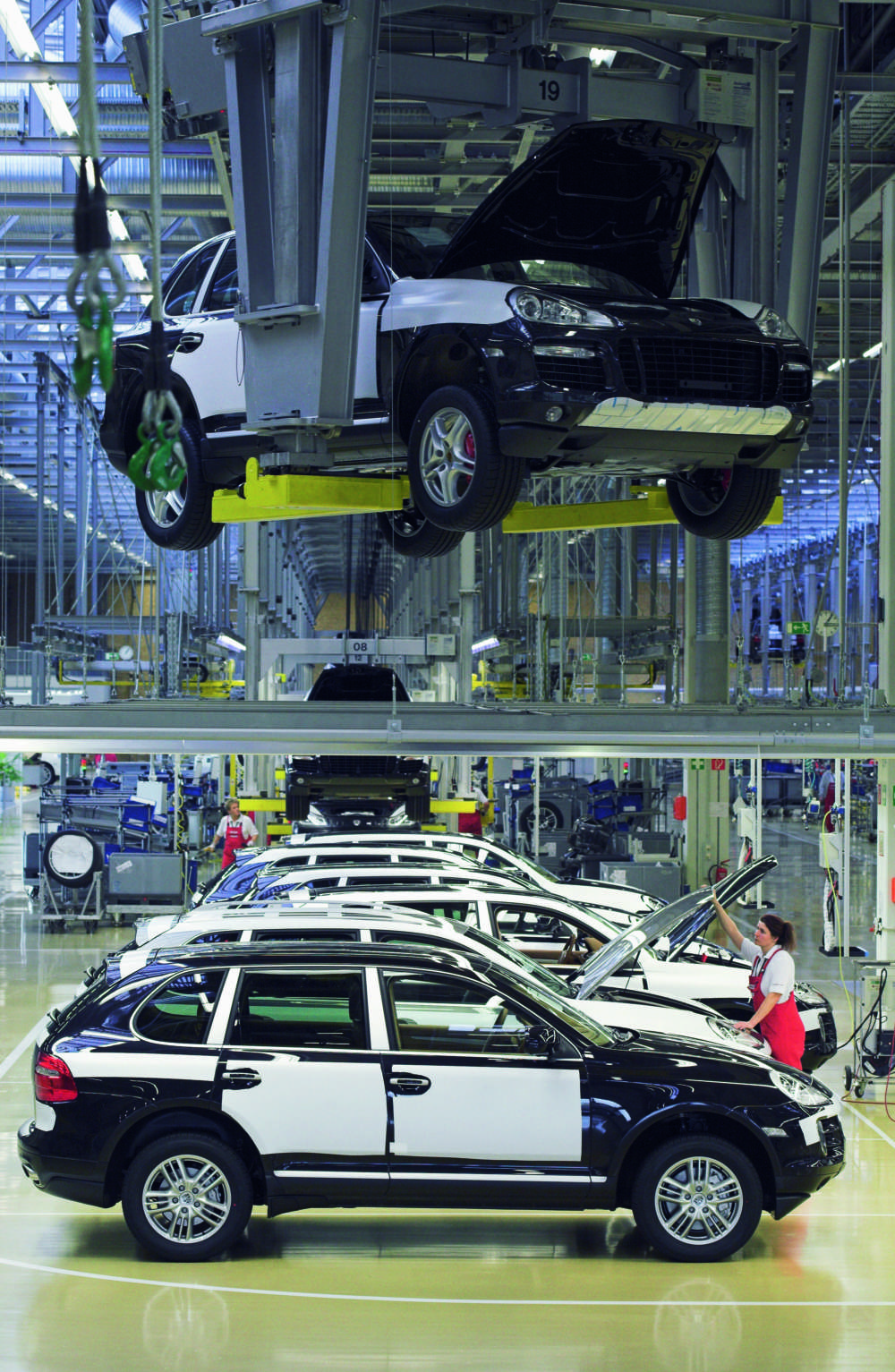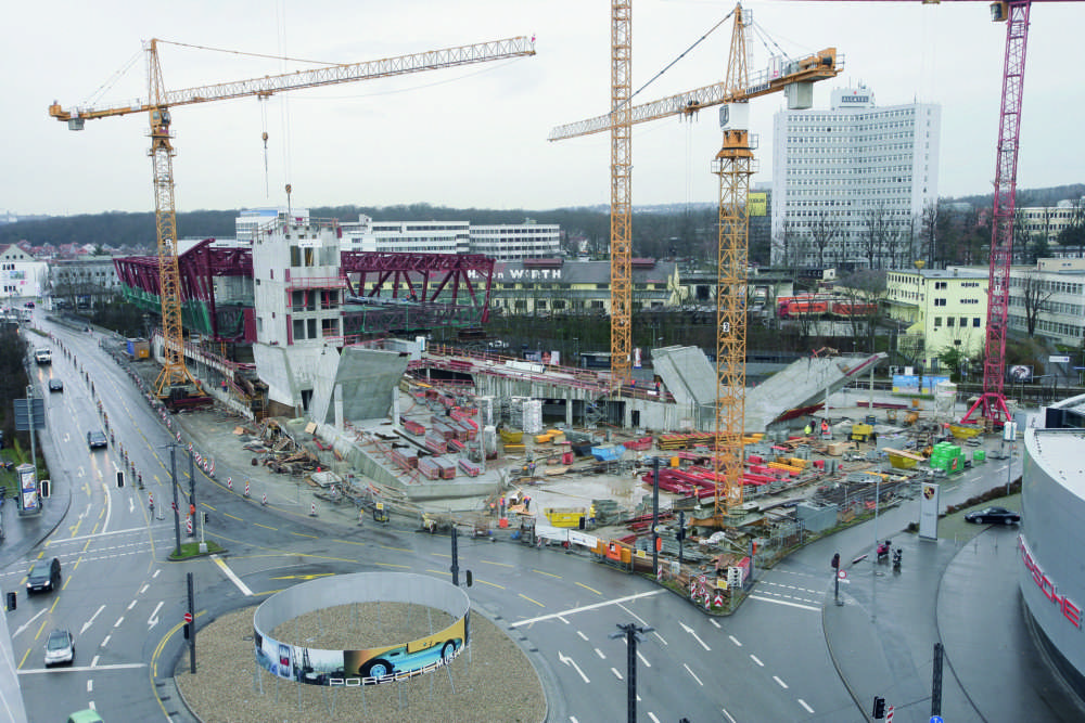 The construction of the new Porsche museum: the underground parking lot, first floor and second floor are made from reinforced concrete. The exhibition area above them is a steel construction. (February 2007)