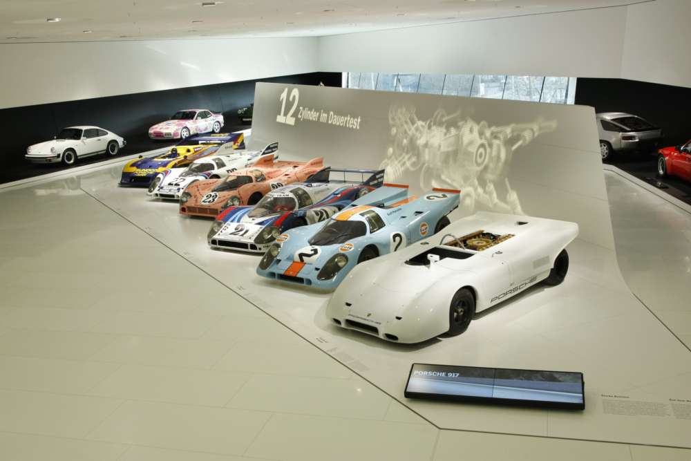 The exhibition: The â917â theme shows amongst others the Porsche 917 KH Coupé (in front)