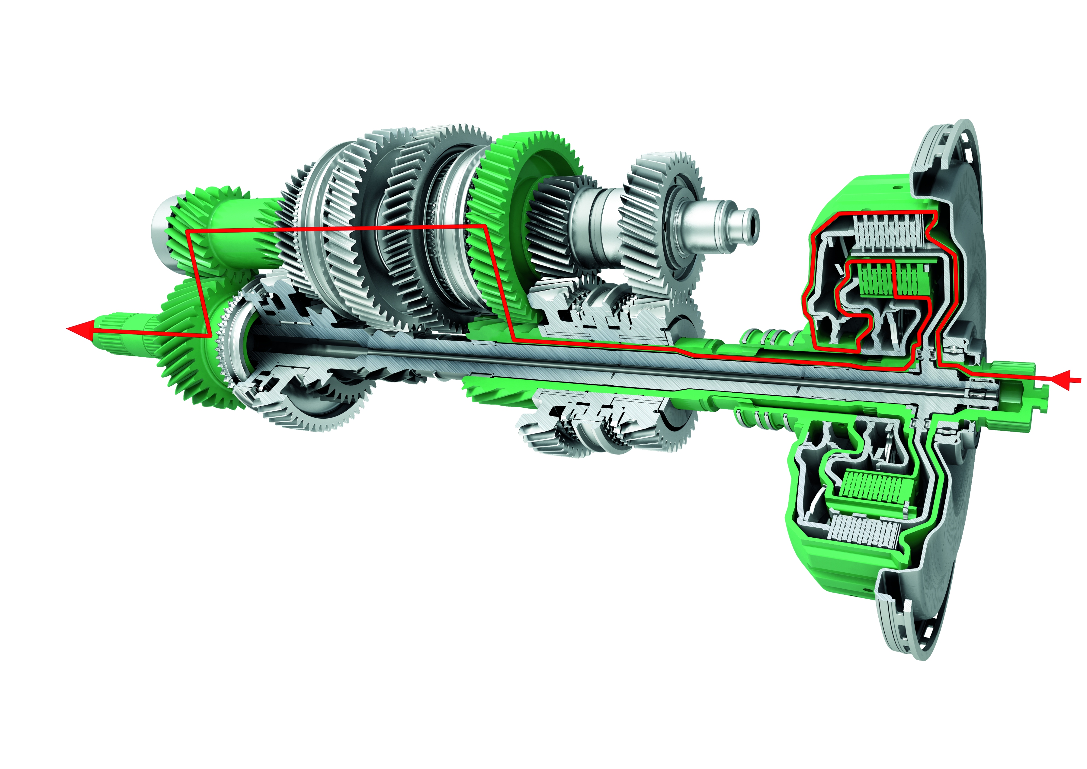 Flow of forces with the Porsche double-clutch system (PDK) in first gear