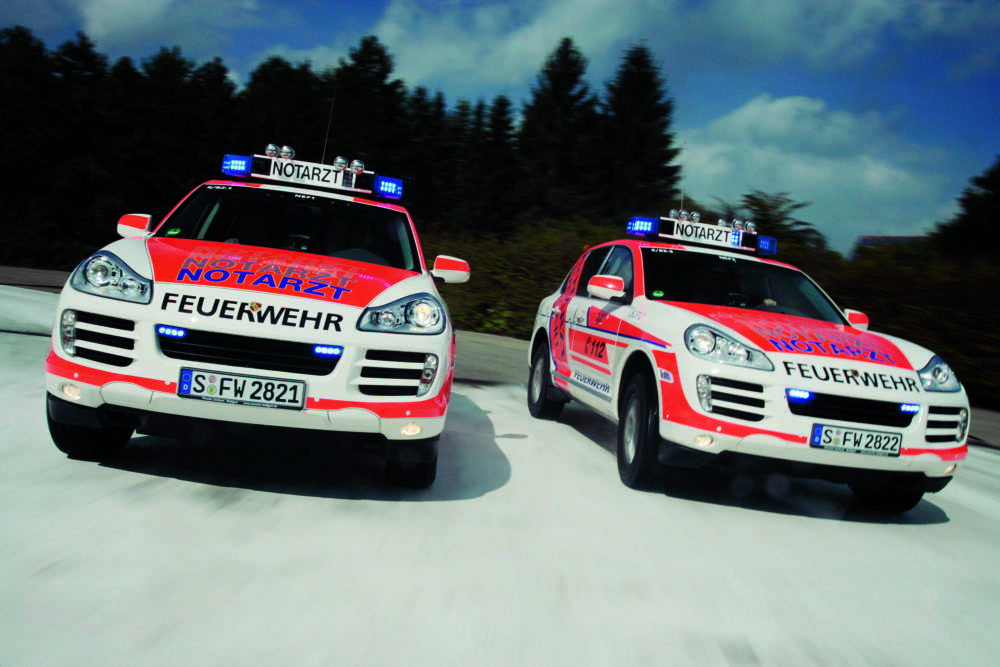Die beiden neuen Cayenne-Notarzteinsatzfahrzeuge der Stuttgarter Feuerwehr