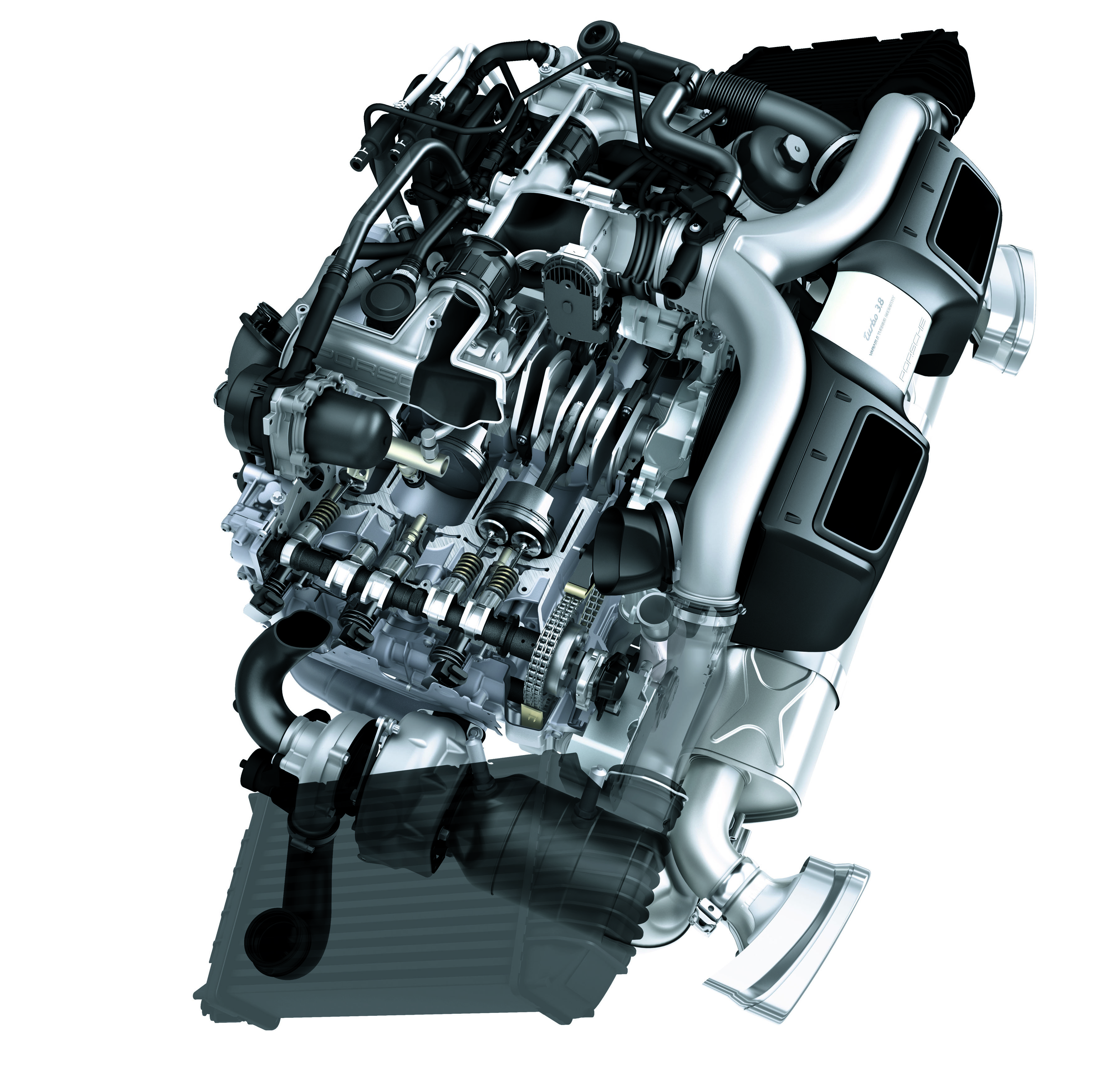 The 3.8l biturbo engine of the 911 Turbo with direct fuel injection has a performance of 500 PS (368 KW)