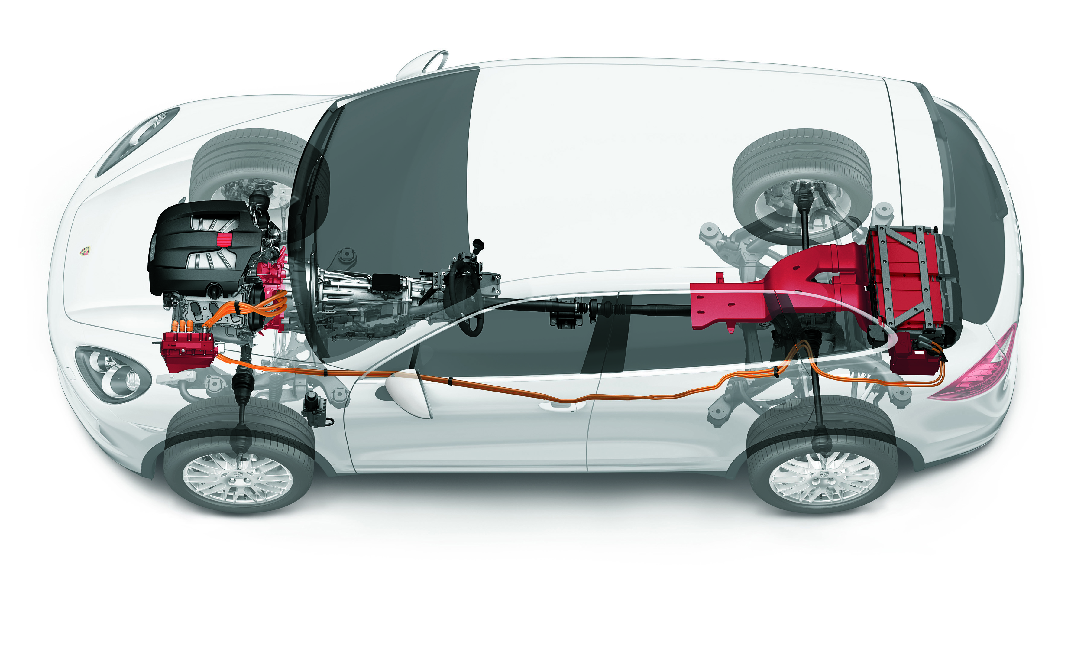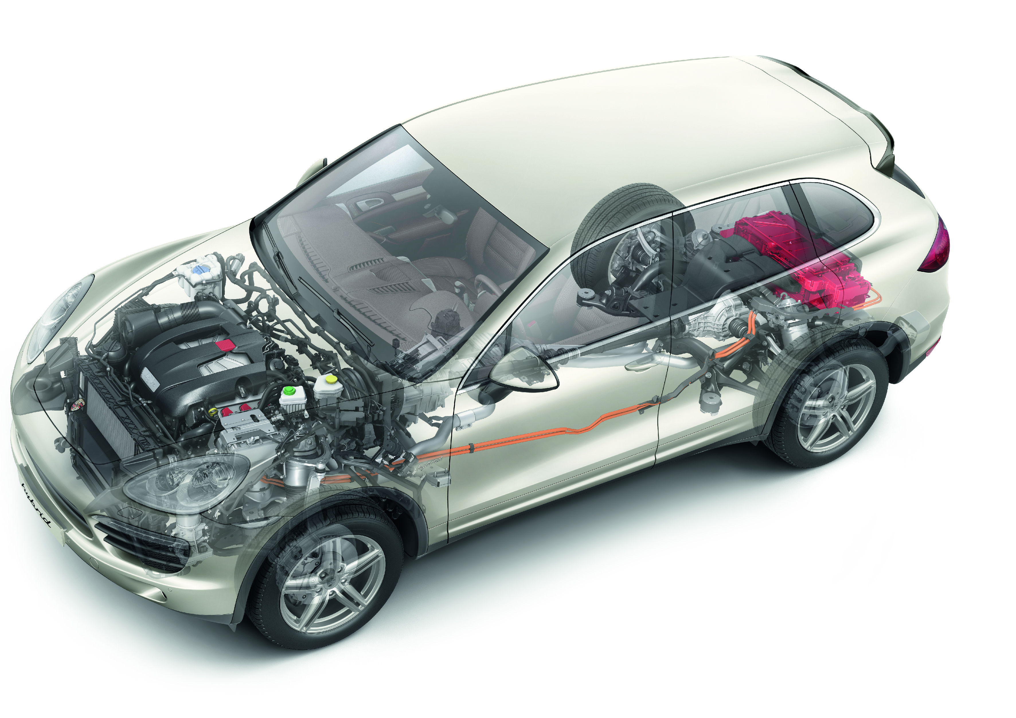 Hybrid Components (red) in the Porsche Cayenne S Hybrid
