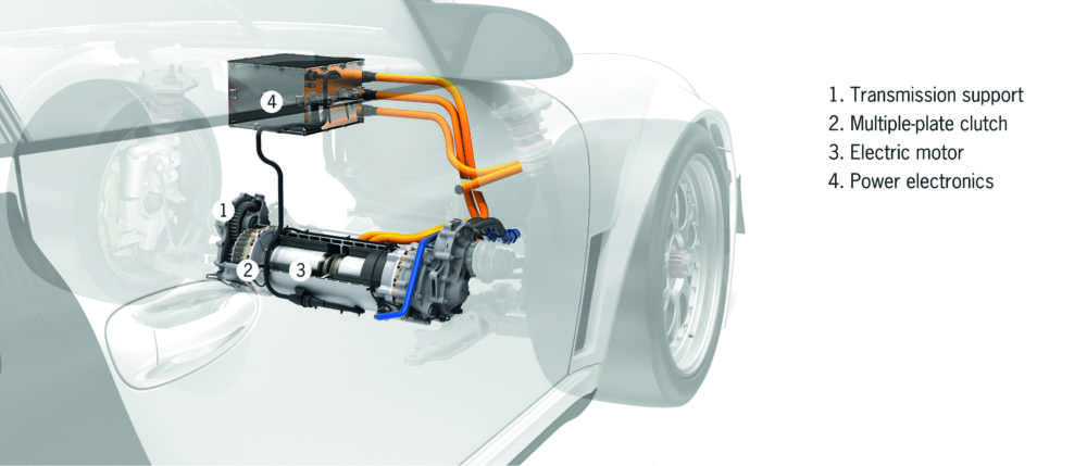 Front axle of the 911 GT3 R Hybrid with two electric motors