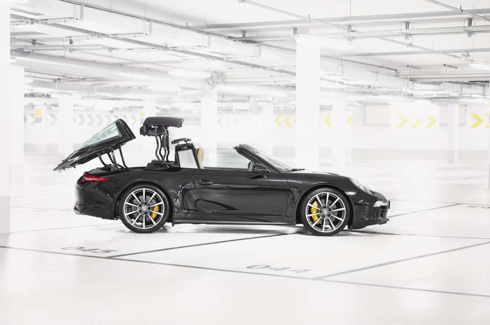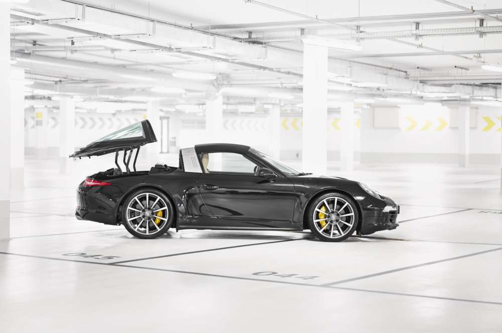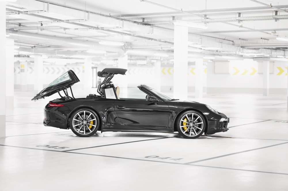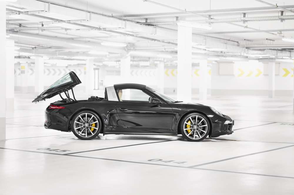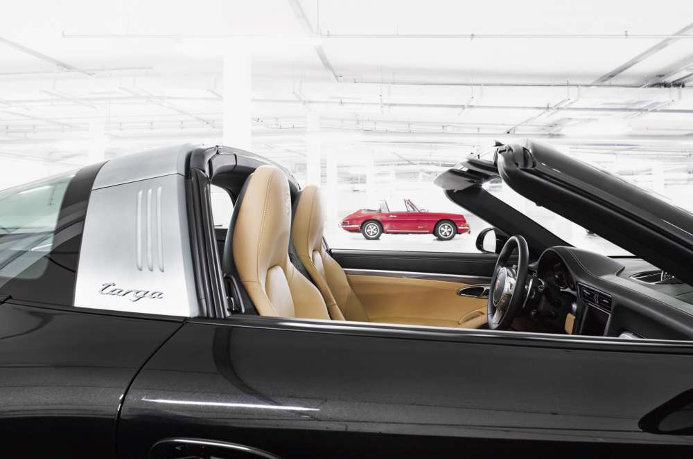 The new Targa meets ist forerunner: A 911 Targa 2.0 from 1967 in the background, and the 911 Targa 4S in the foreground. The newcomer´s top opens at the press of a button, whereas the old one had to be removed and stowed away by hand.