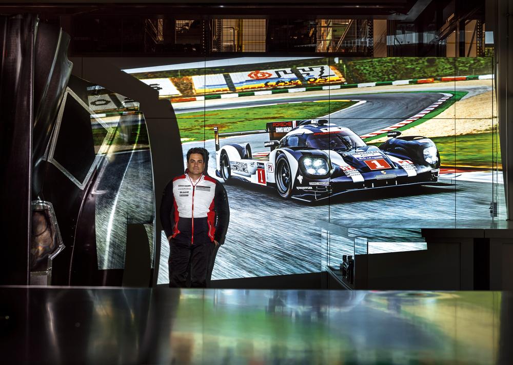 Andreas Seidl (Team director LMP1) in front of a projection of the 919 Hybrid (2016)