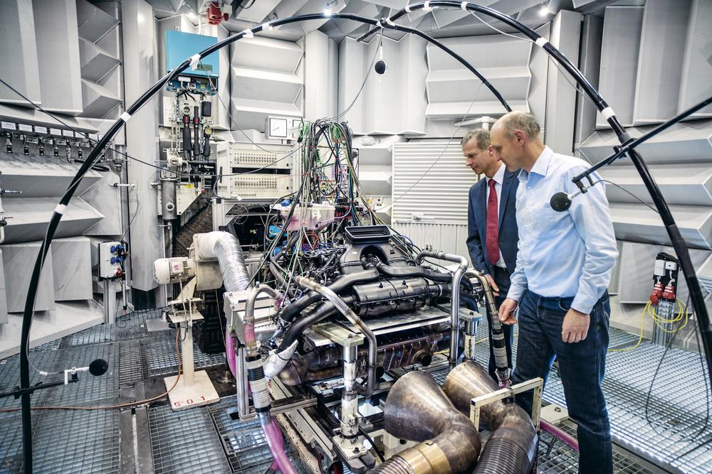 (l-r) Dr. Bernhard Pfäfflin (Head of vibrational technology and acoustics), acoustic expert Bernd Müller
