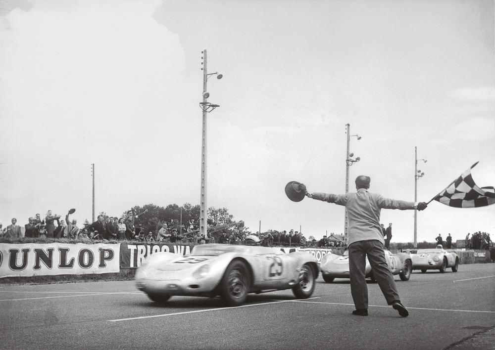 Jean Behra driving a 718 RSK Spyder during the 24 Hours of Le Mans in 1958