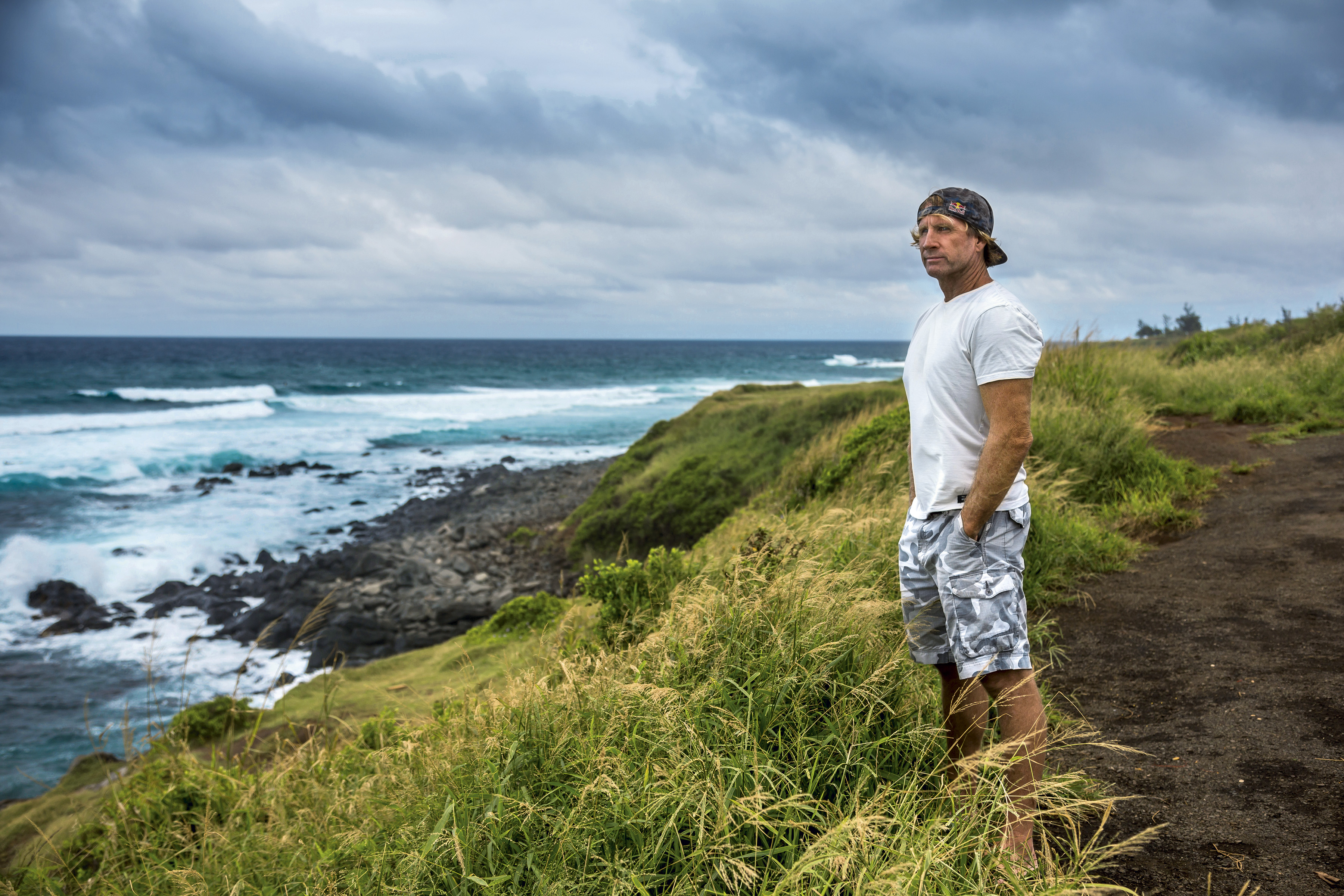Robby Naish, windsurf legend, at his garage in Hawaii