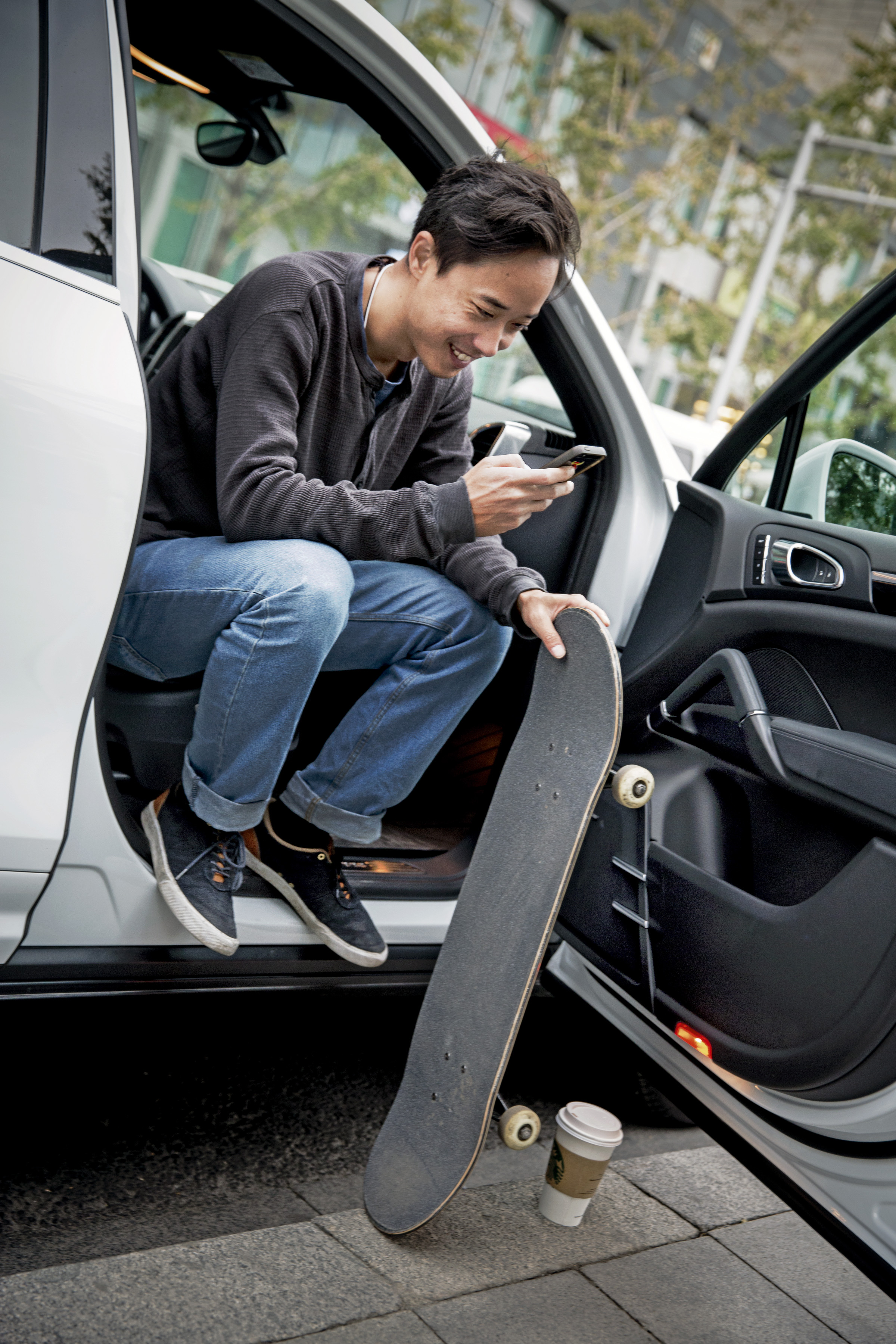 Lui Chen, skater and filmmaker from Beijing, in a Cayenne