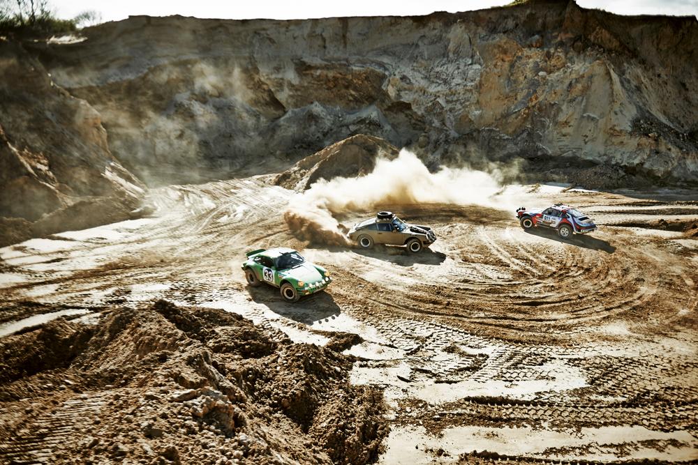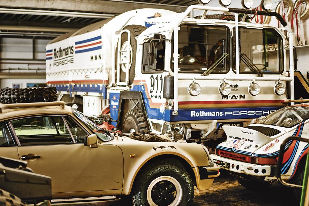 Racing truck and several all-terrain Porsches of Erik Brandenburg