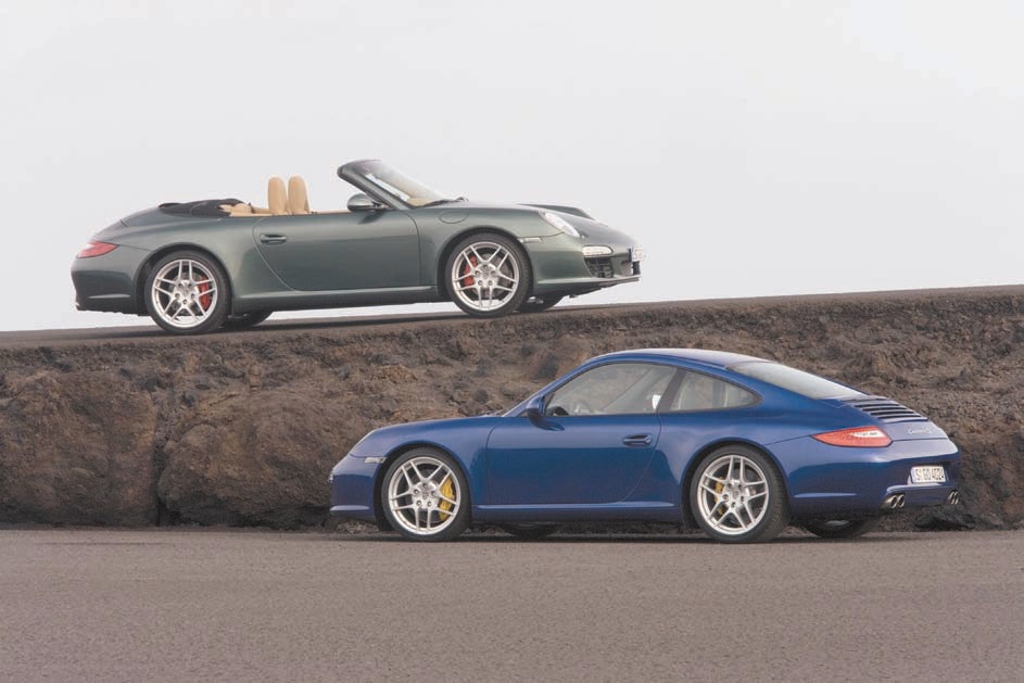 For the first time since the 1970s, Porsche offered a base 911 Carrera (with a 3.4-liter flat six) and a 3.8-liter Carrera S model, with corresponding differences in horsepower and trim. All-wheel-drive C4 and C4S models appeared for 2005. Porsche Archiv