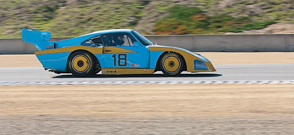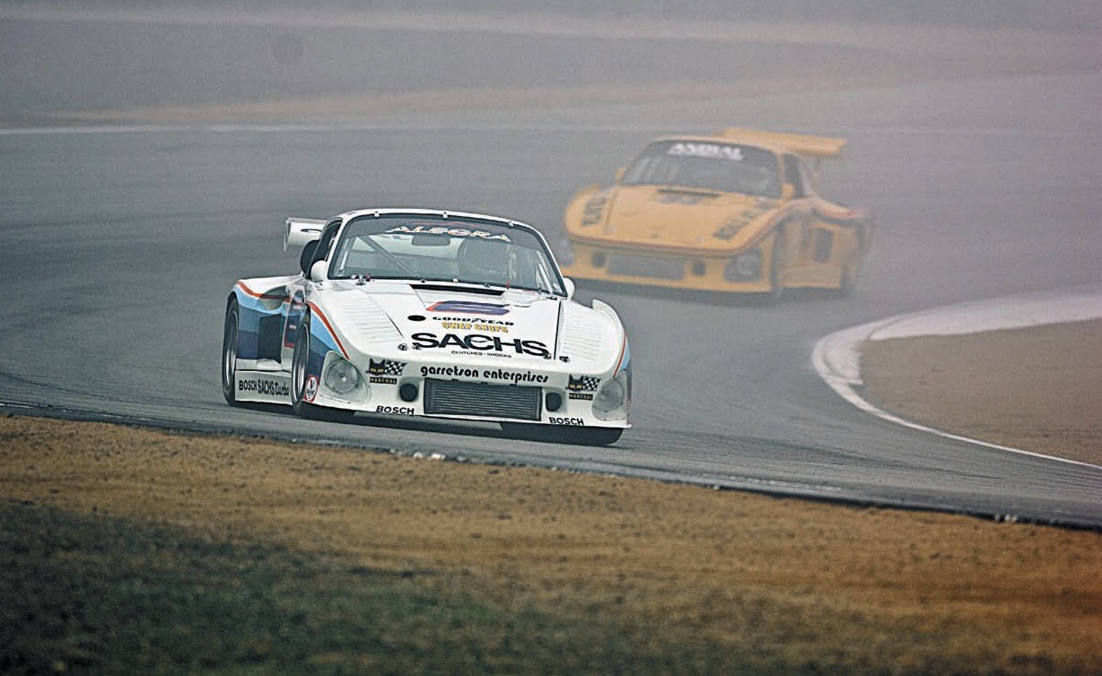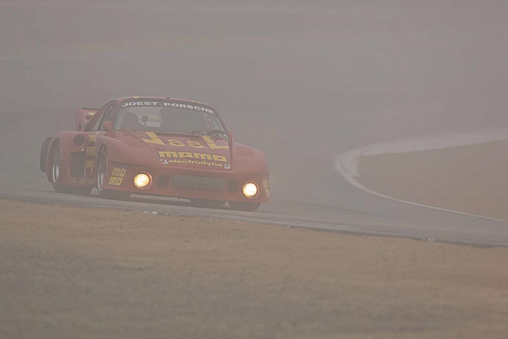 Dick Barbour’s 1980 Sebring-winning 935 Kremer K3 led Andial Racing’s own version of a K3 through Laguna Seca’s turn 5 in early morning fog. Mazda Laguna Seca Raceway hosted Rennsport Reunion IV in October 2011. Randy Leffingwel