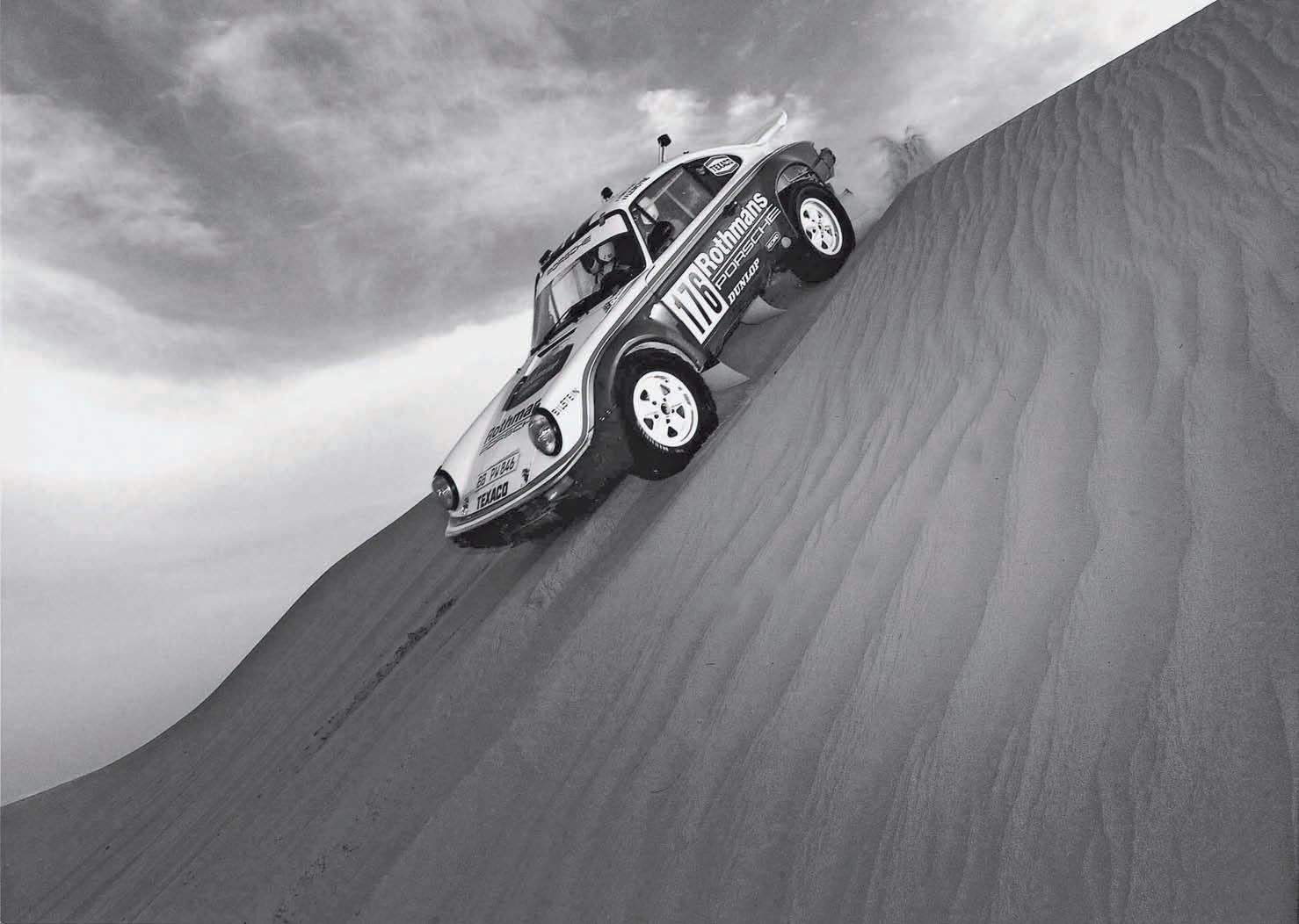 René Metge and co-driver Dominique LeMoine during a training leg for the 1984 Paris-Dakar raid challenged the forward tipping point of their 953 4x4. Such techniques paid off for Metge and LeMoine, who won the automobile class. Porsche Archiv