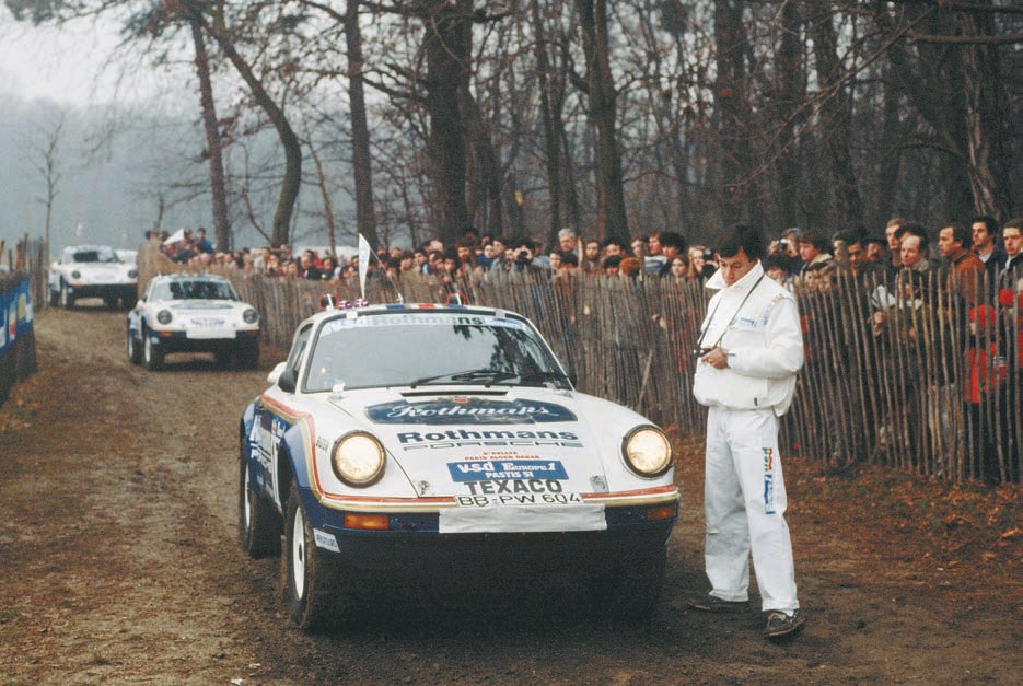 Porsche’s three clean Typ 953s lined up for the start of the 1984 Paris-Dakar rally. When they left the Bois de Boulogne at the start of a 15-stage 6,000+ mile event, they traveled over paved roads through the city and countryside. Porsche Archiv