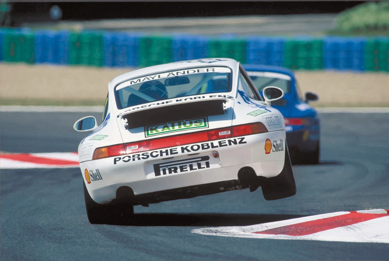 Cutting his apexes tight gained Porsche Carrera Cup champion Bernd Mayländer precious tenths of seconds. Mayländer was German Cup and Supercup champion in 1994. Porsche Archiv