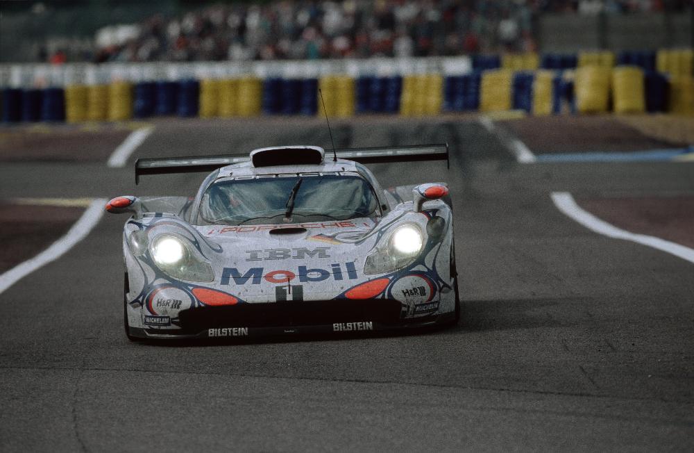 Into the pits on Saturday evening before the long Le Mans night, GT1 Race number 26 had begun to collect dirt along with miles. The next afternoon, co-drivers Allan McNish, Stephane Ortelli, and Laurent Aiello won the race, completing 352 laps and covering 2,975.8 miles. Porsche Archiv