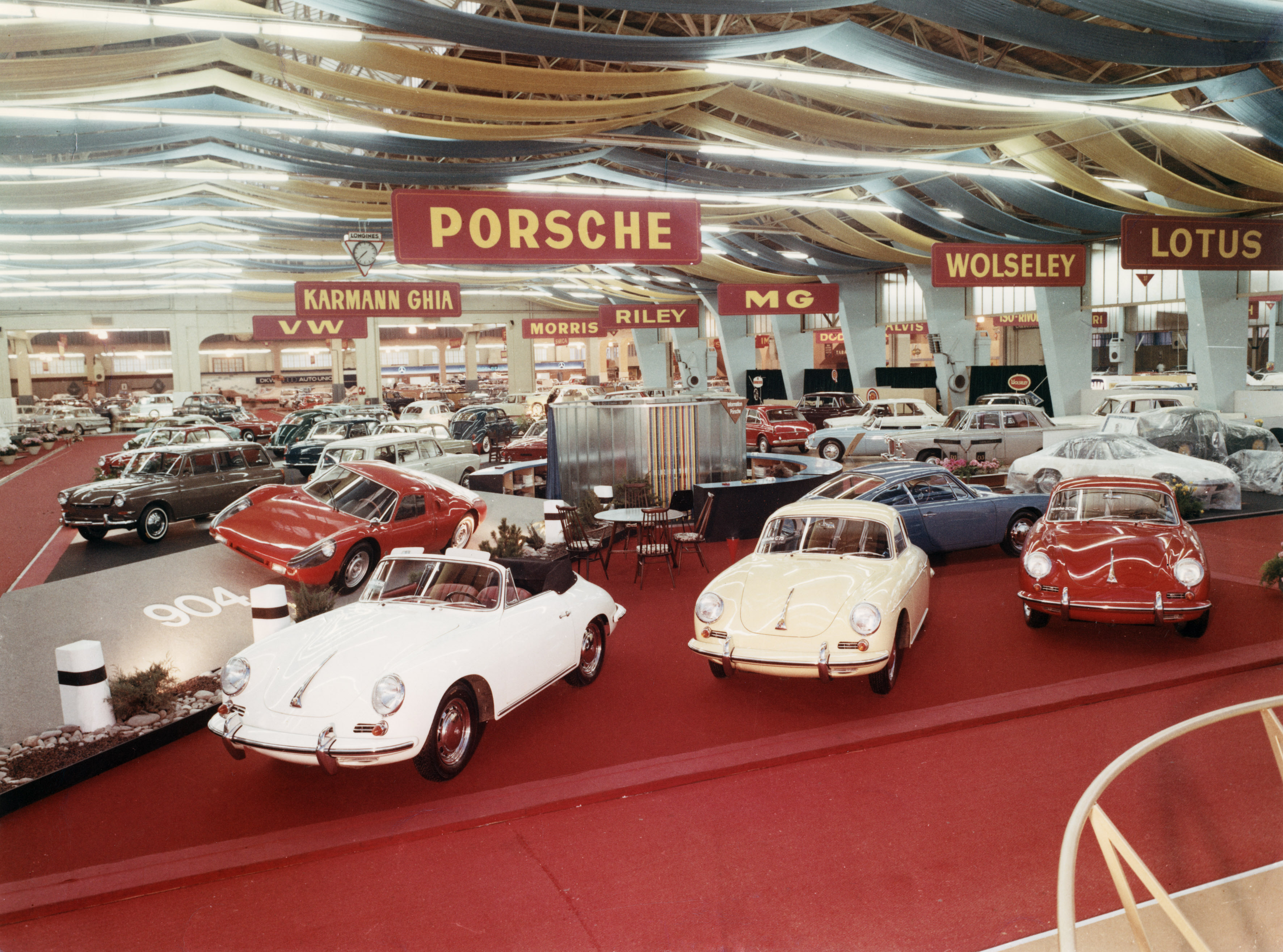 Six months after the Frankfurt debut, Porsche showed a Quick Blue–painted 911 prototype, chassis 13 326, along with a bright red 904 at the Geneva, Switzerland, auto show. Porsche shared show space with Volkswagen. Porsche Archiv