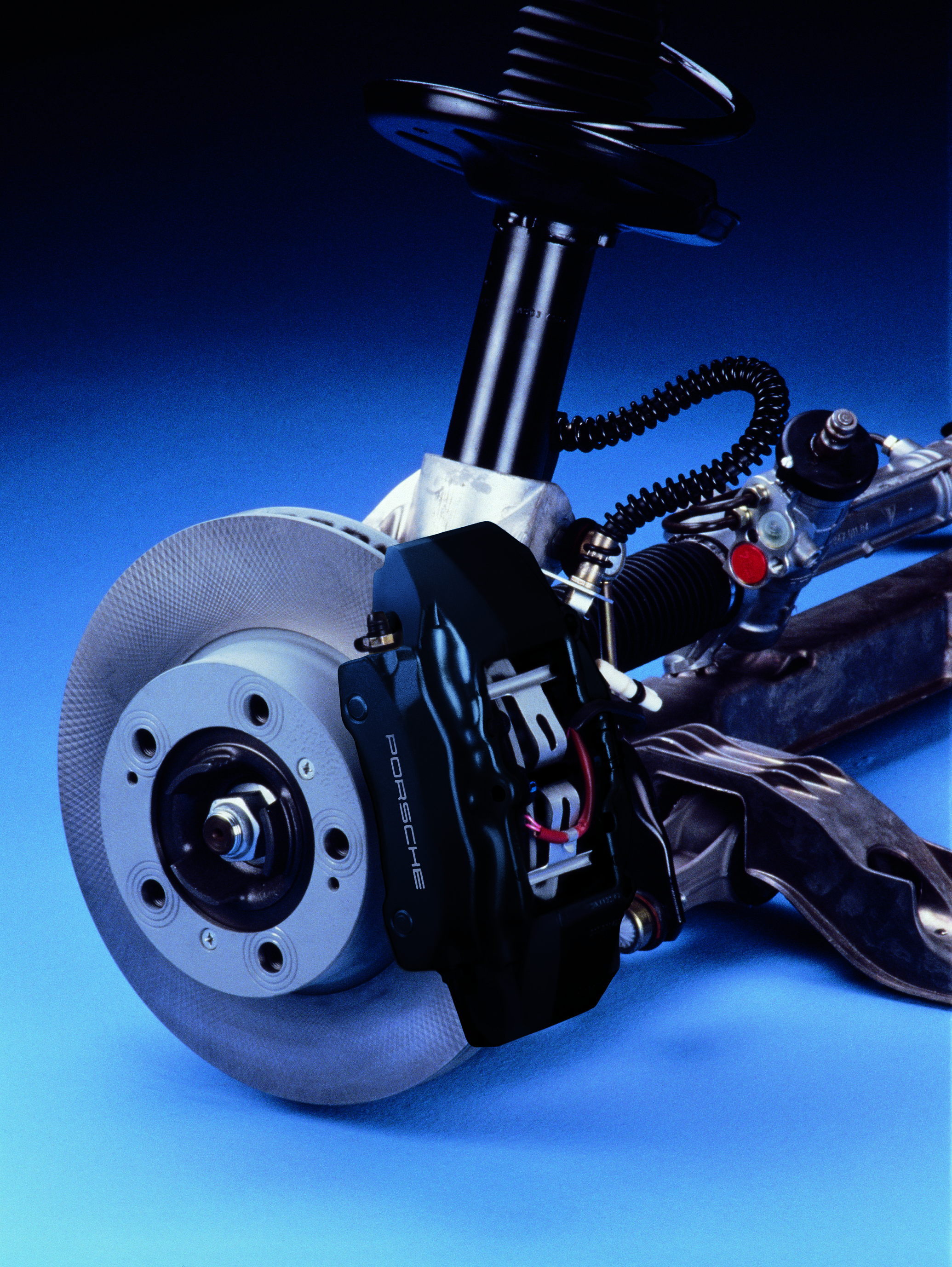 The front axle of the Boxster is controlled by aluminium trailing arms and control arms