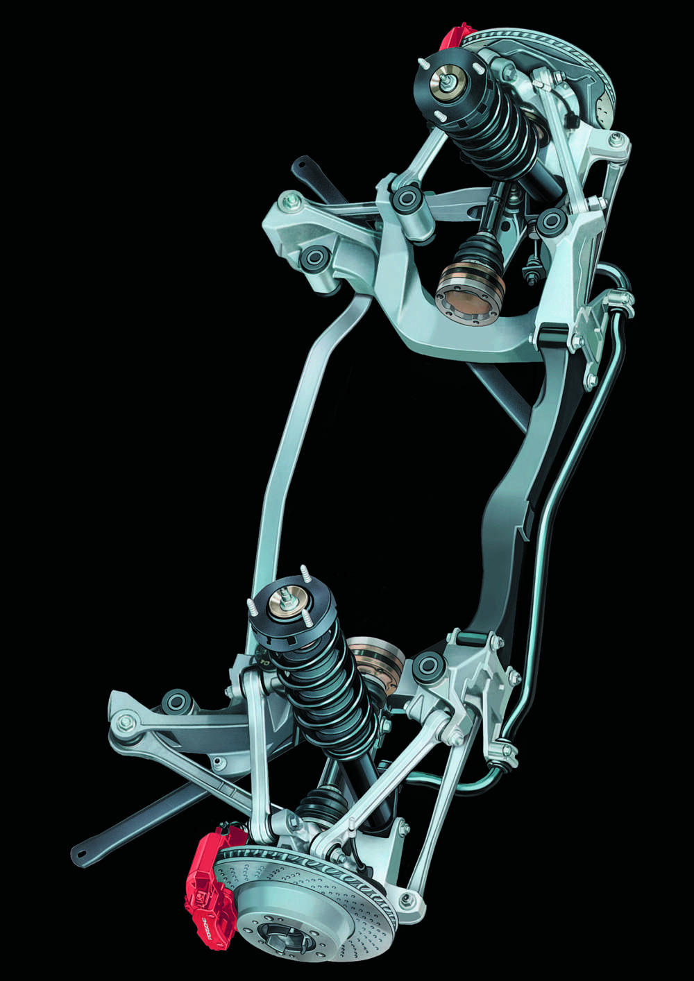 The multi-link rear axle of the 911 Turbo has a track widened by 40 millimetres