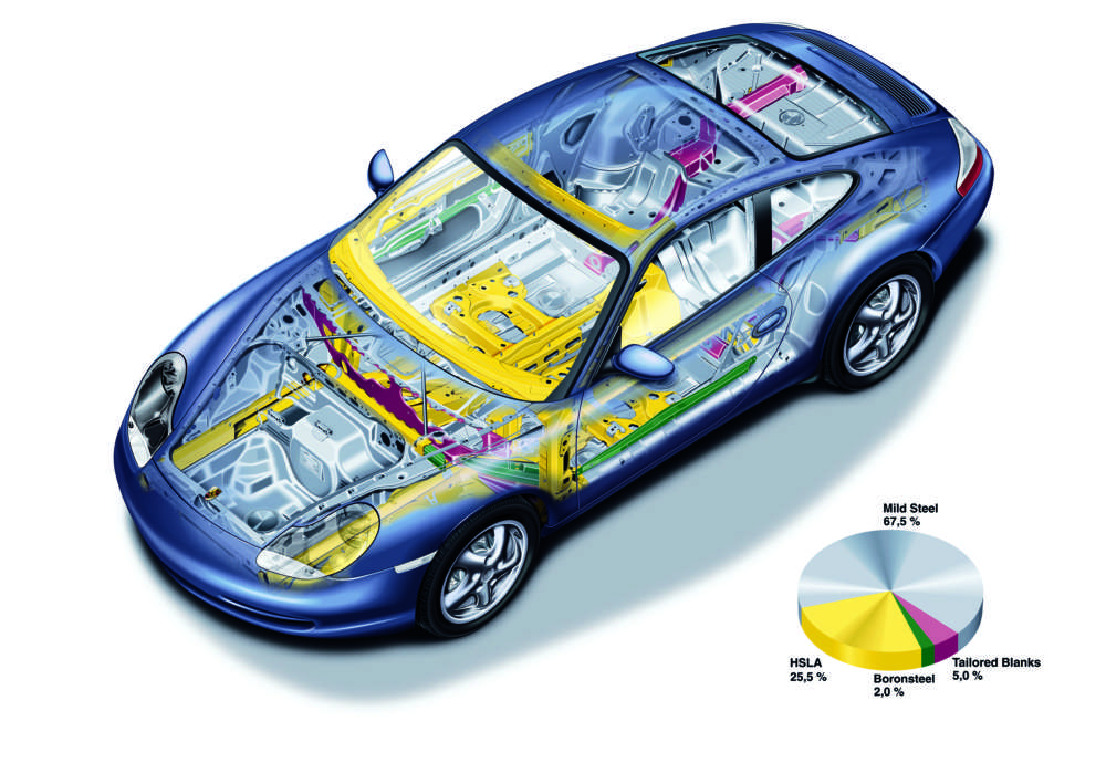 Offset crash test: The defined deformability of the steel-body ensures that very little weight is put on the passangers in the event of an accident