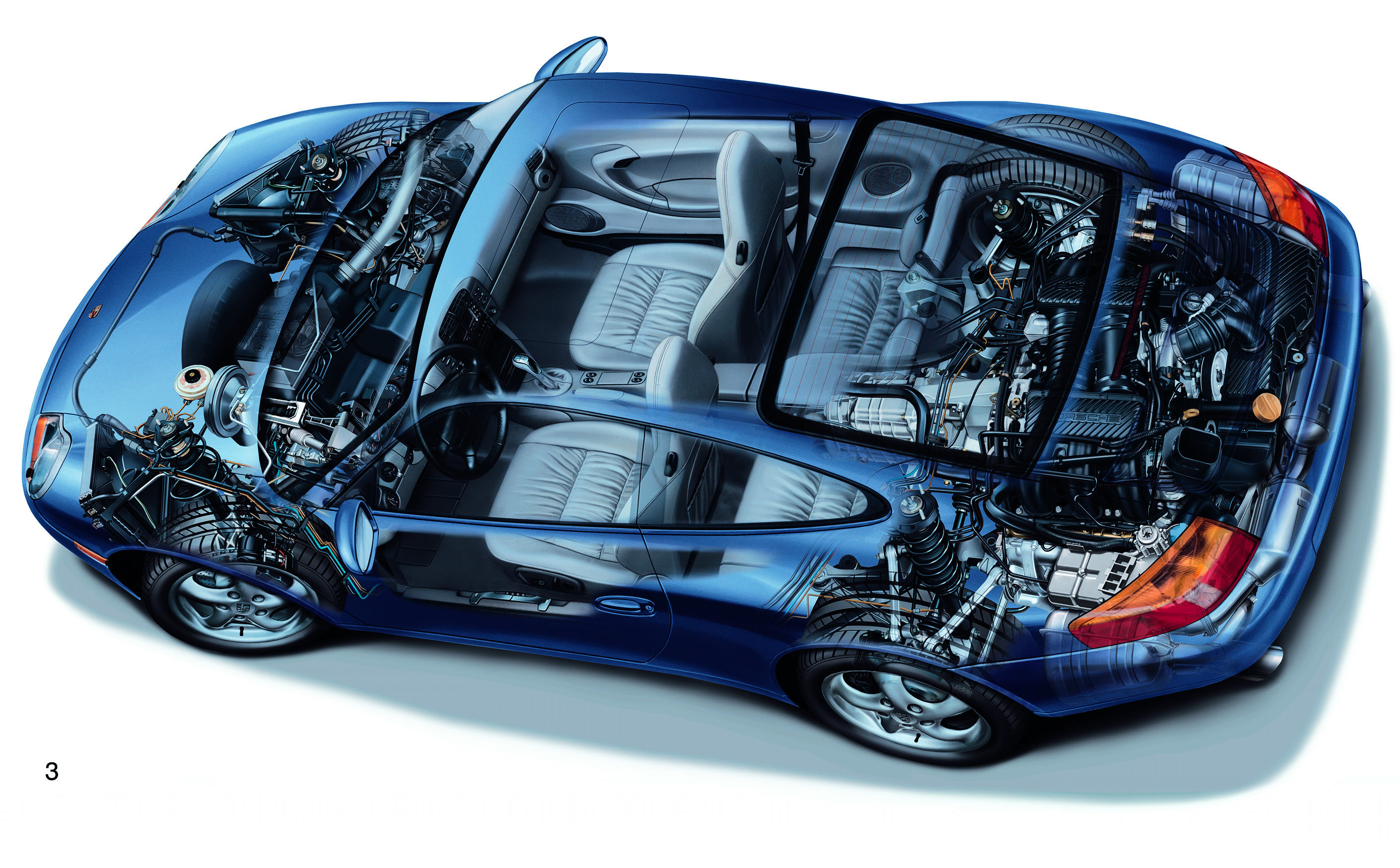 Passive safety in vehicle interior: Fullsize airbag for driver and passenger and Porsche Side Impact Protection System (POSIP)