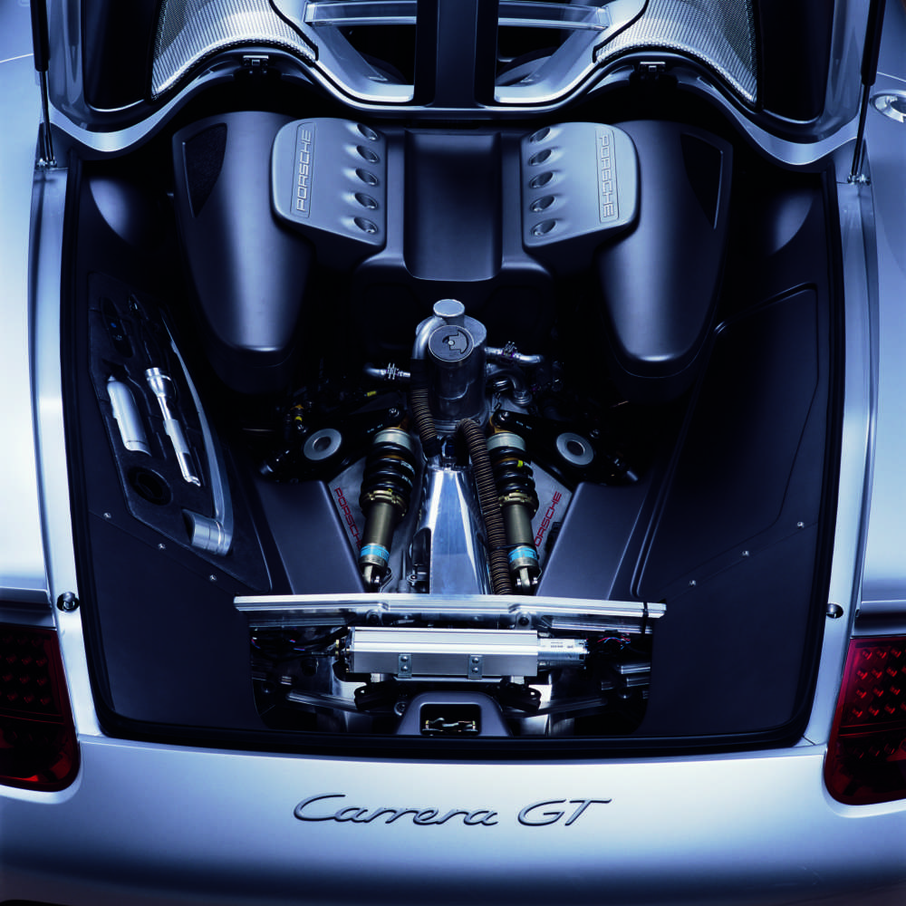 The V10 normal-aspiration power unit of the Carrera GT on the dynamometer