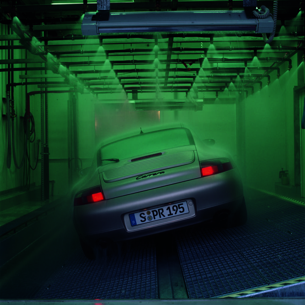 Everything water-tight! Tests are performed in the rain system under realistic conditions