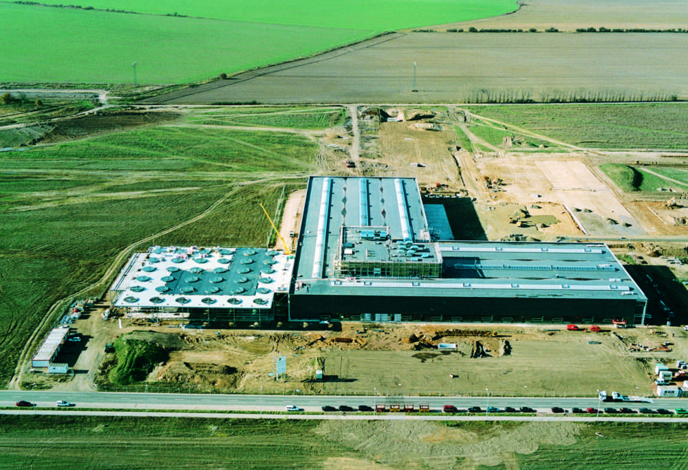 State of the construction work on 10.11.2000: the facade of the production hall has already been completed