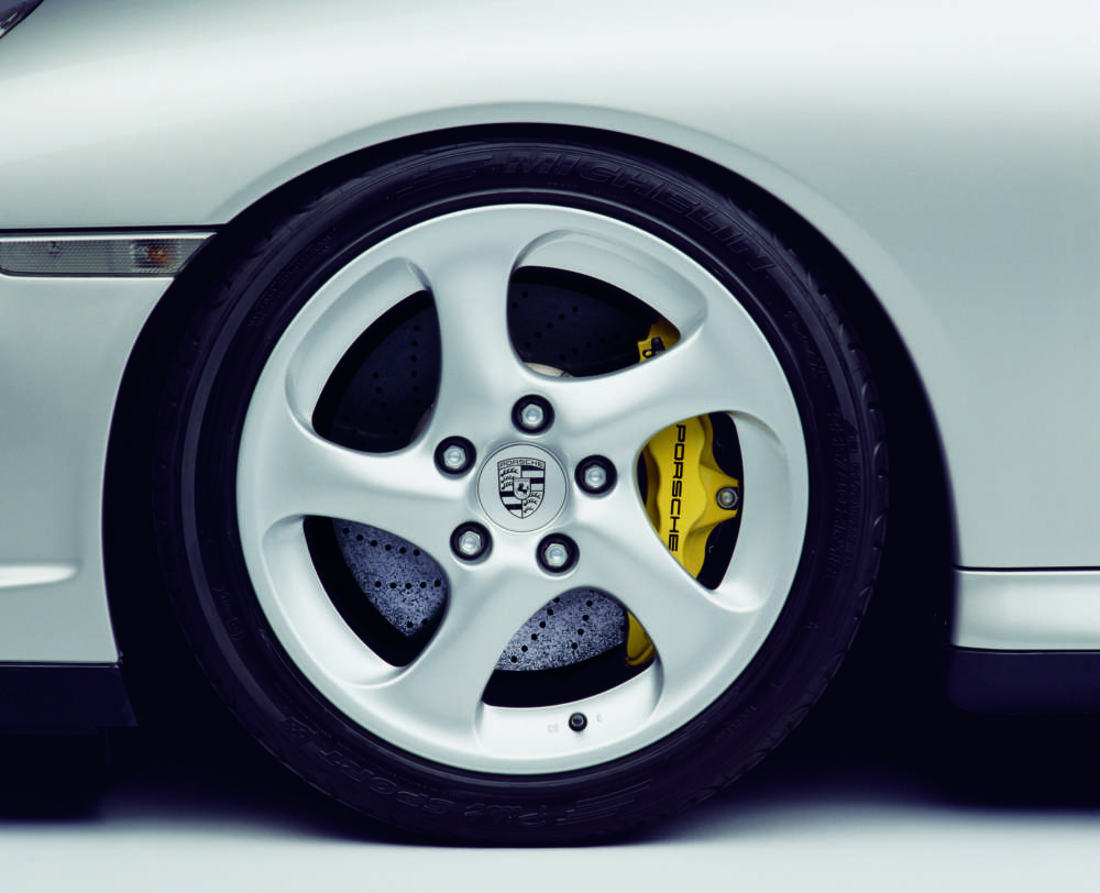 The 911 GT2 is fitted as standard with Porsche Ceramic Composite Brakes (PCCB)