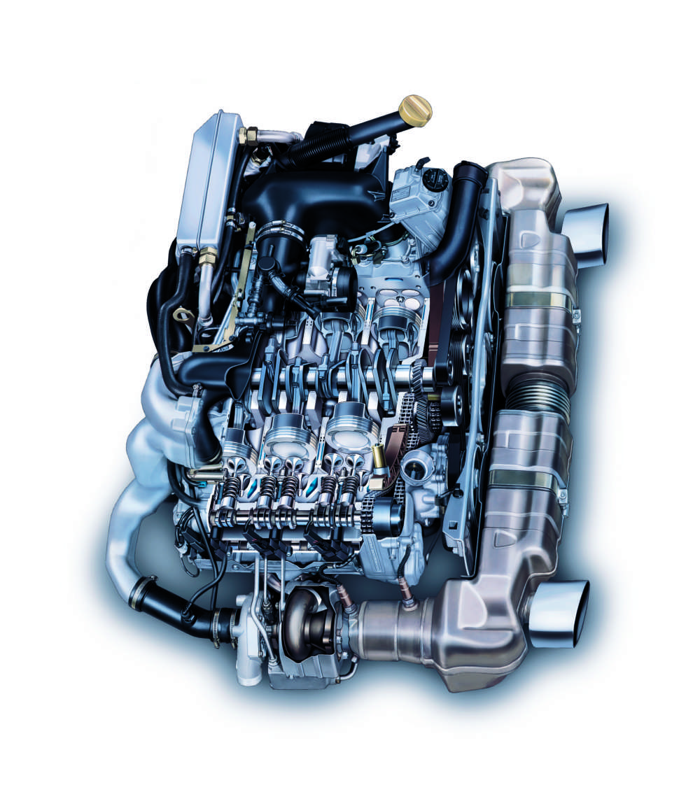 The 6 cylinder Boxer engine of the GT2 is fitted with the valve lift adjusting system "VarioCam Plus"