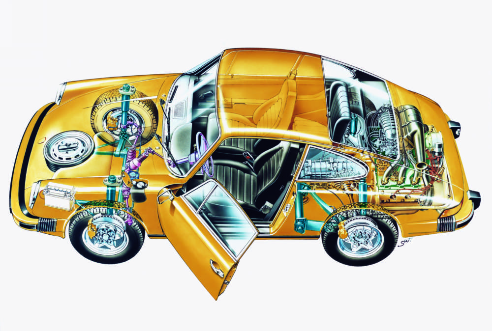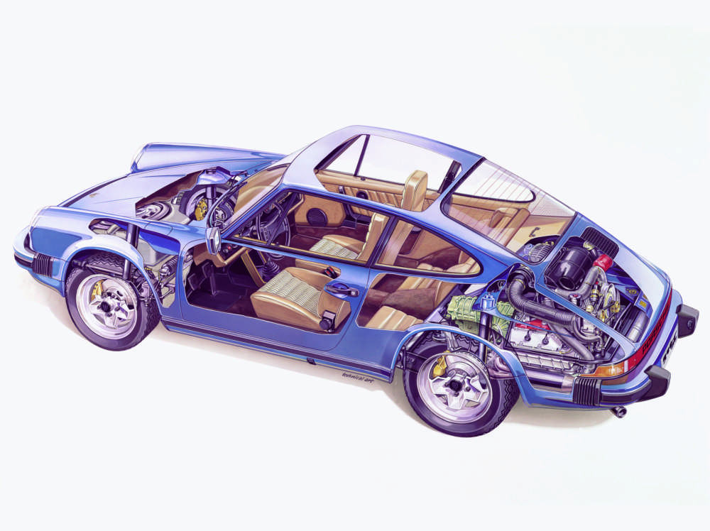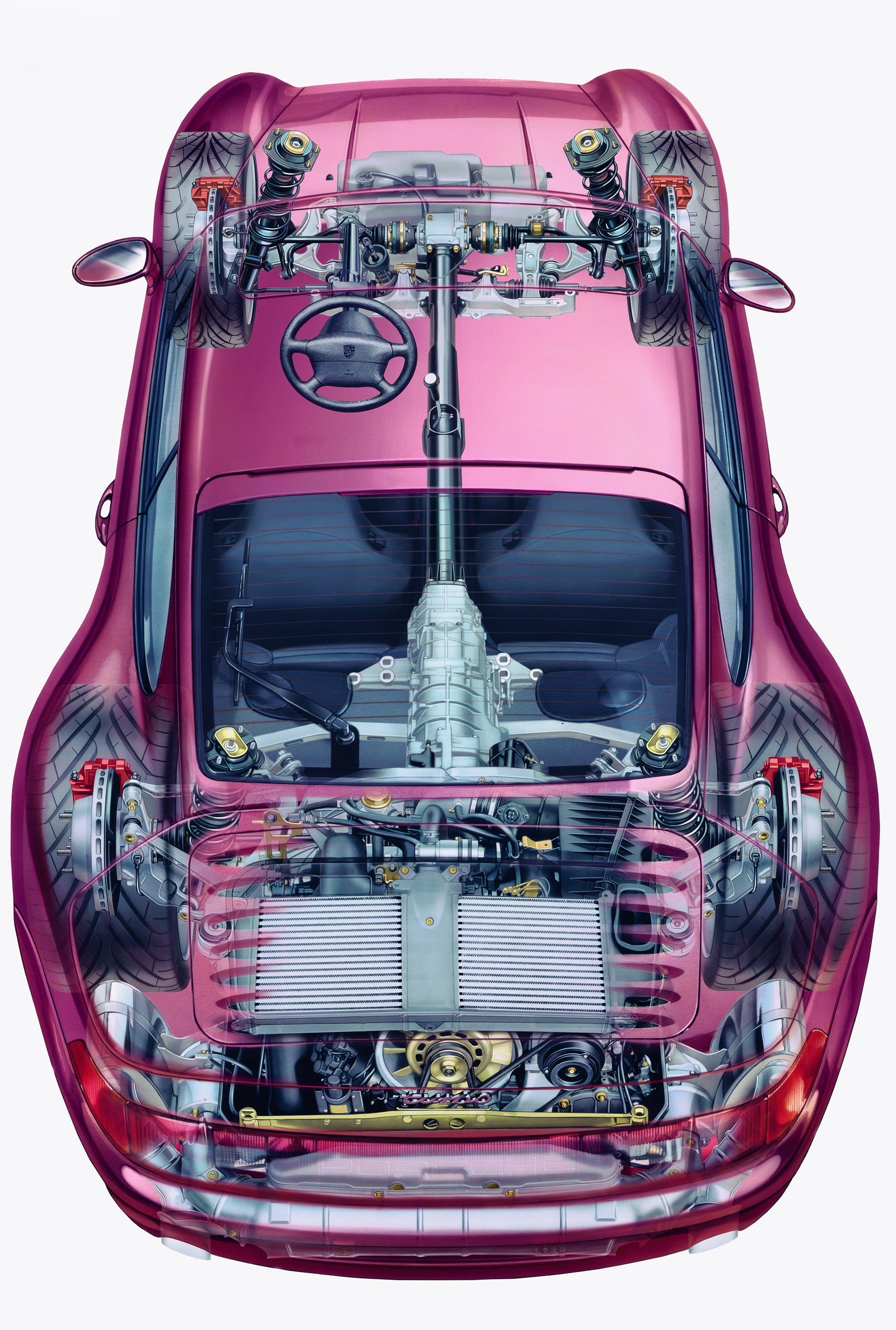 3.3-litre engine with exhaust-gas turbocharger and charge-air cooler for the Porsche 911 turbo