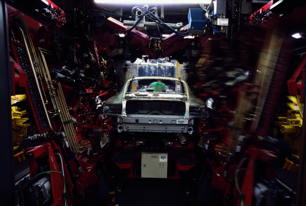 Final welding work on the body of the 911 Turbo