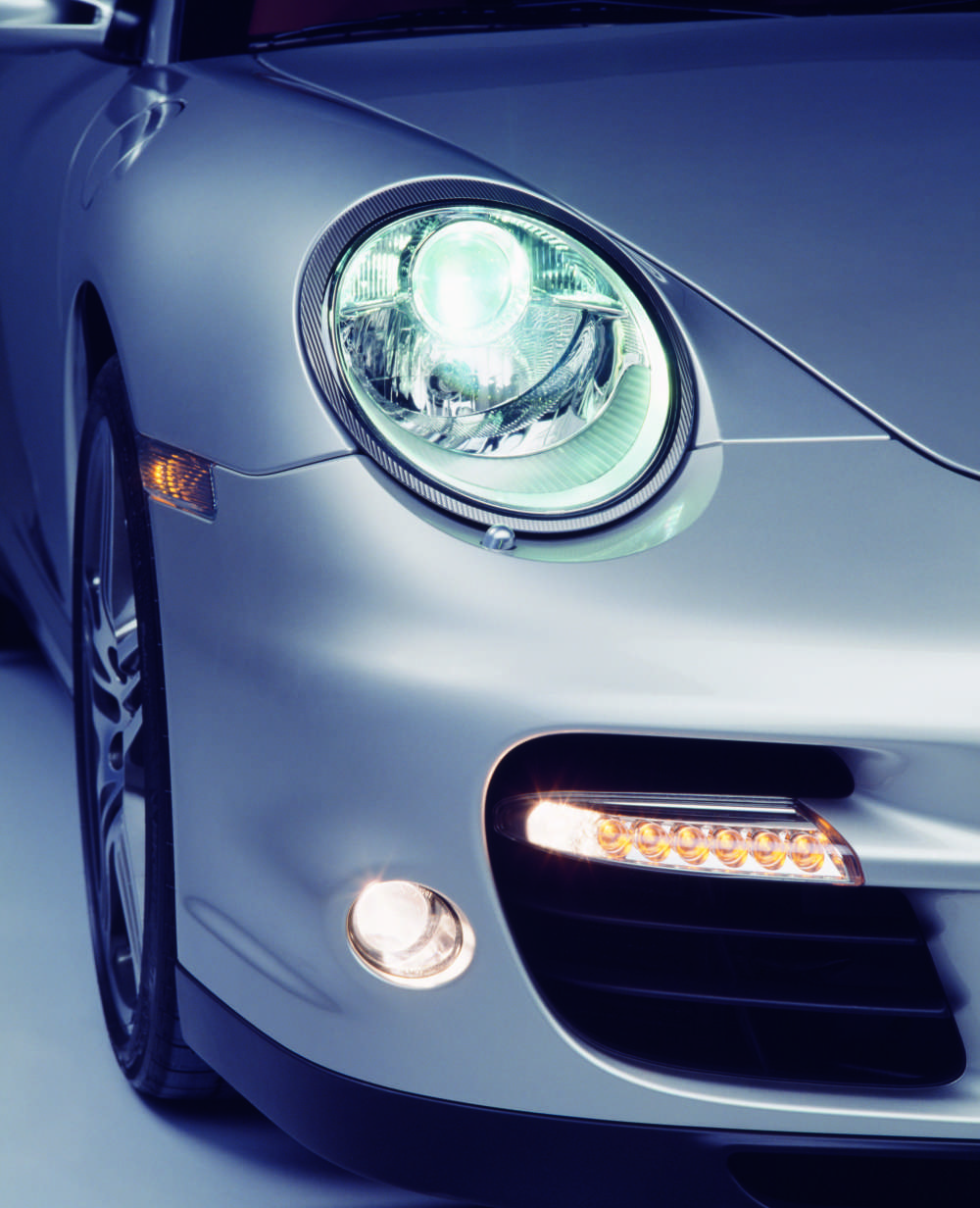 Front with Bi-Xenon headlights, LED turn signal lamps and fog lights as standard equipment