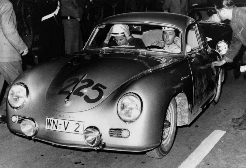 Herbert Linge in a 356 A Carrera during the Mille Miglia in 1957