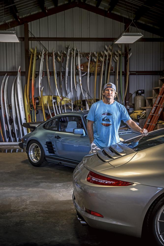 Robby Naish next to his 911 Carrera S (Type 991) and 911 S from 1977
