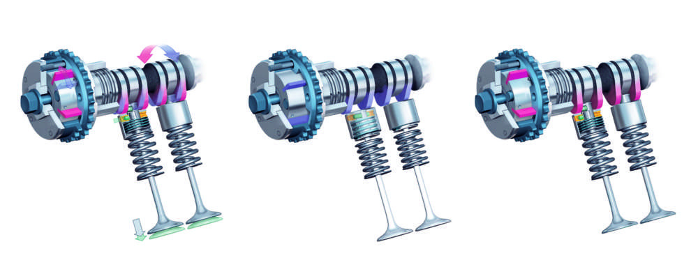 VarioCam Plus incorporates two engine concepts: Camshaft adjustment and valve-lift changeover